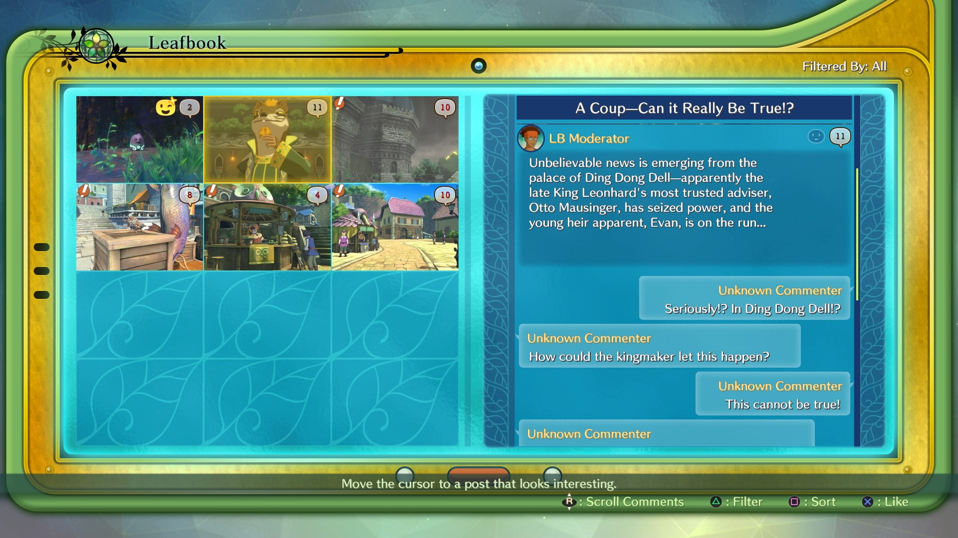 If you haven’t played the first game, you might draw some parallels to a different world: our own. Rather than returning to the idyllic 1950s aesthetic of the first game, this installment is thrust into a more modern and complex setting. There are clear allegories to the way our modern world works, from the jarring first cutscene, to “Leafbook”—the world’s equivalent of Facebook (complete with status updates, comments, and likes).