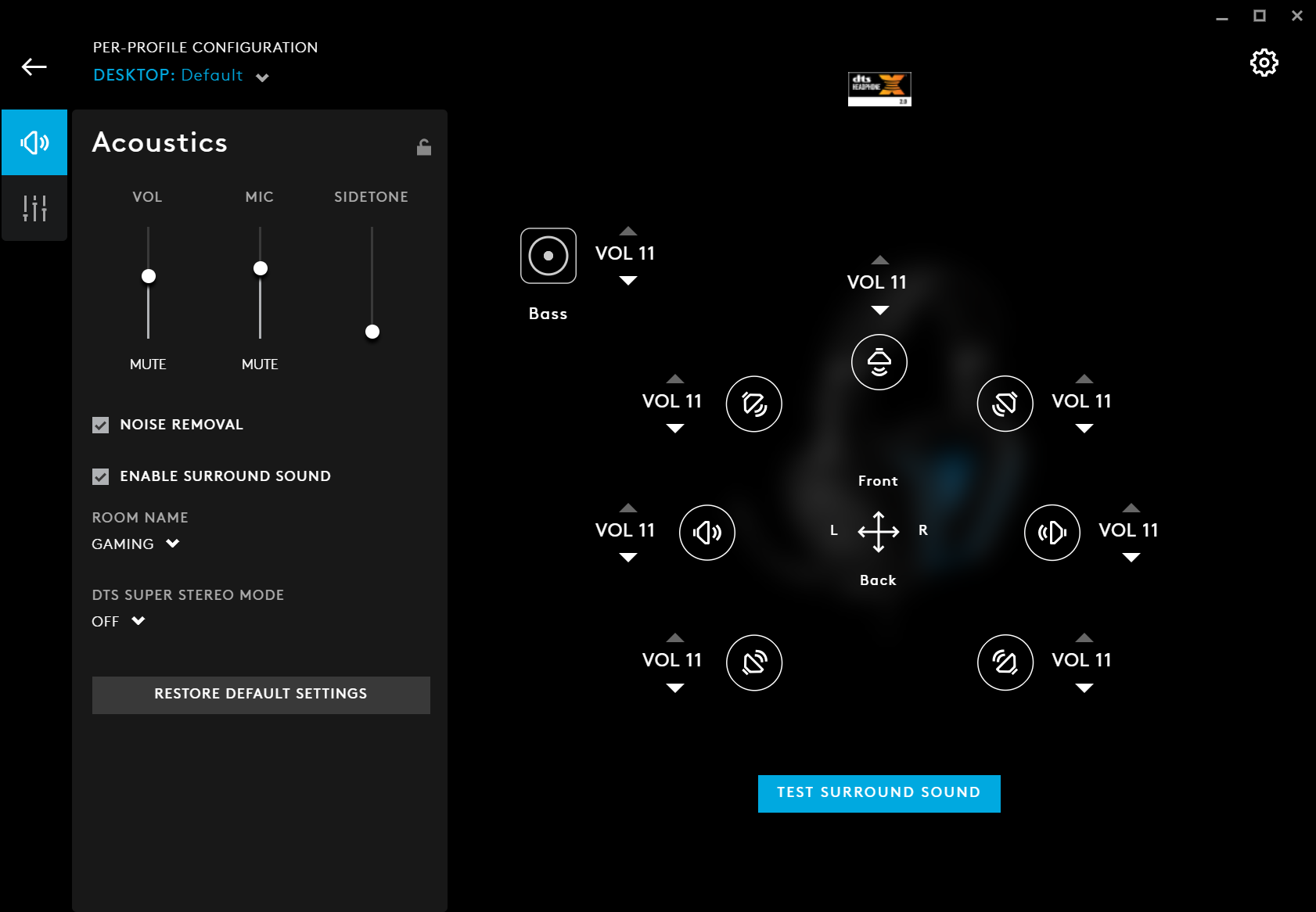 We’ll talk more about the headset’s mic, drivers, and DTS capability in the section below. Here, however, let’s talk about what you can do in G Hub, which isn’t a whole lot.