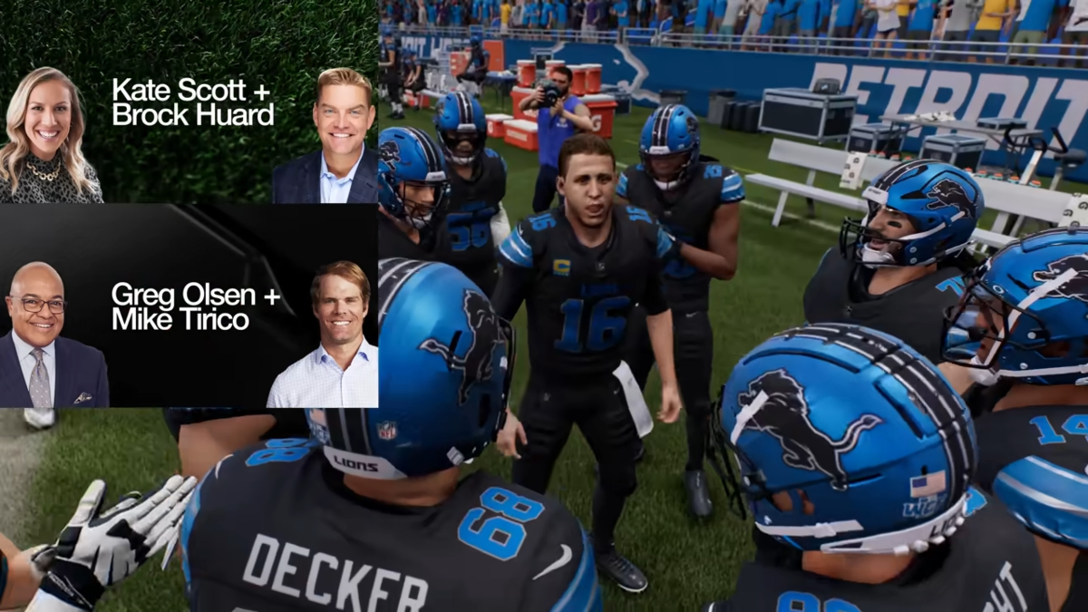 Madden 25 has gone all in on the presentation front by adding two new commentary teams: Mike Tirico and Greg Olsen, and Kate Scott and Brock Huard. In addition to the latest commentary teams, you’ll experience pre-game montages, improved camera angles, celebrations, a fresh UI, and much more, making it feel as close to a TV presentation as it has in the last twenty years. However, all of the presentation improvements still come with their faults. Kate Scott has one-liners repeated ad nauseam, while Mike Tirico sounds like he recorded his lines underwater, which causes him to be drowned out by other game sounds like the stadium noise.