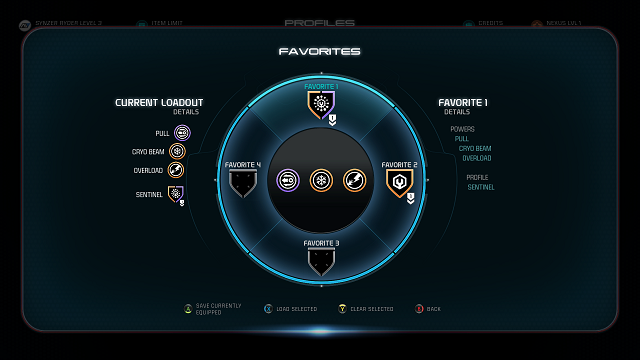 Let me start by saying I actually enjoy the Favorites system and I’m glad it is in the game. I just wish you could do more with it. As it is now, you save up to 4 Profile loadouts, which is basically your class. This allows you to change classes and skills even in the middle of combat.