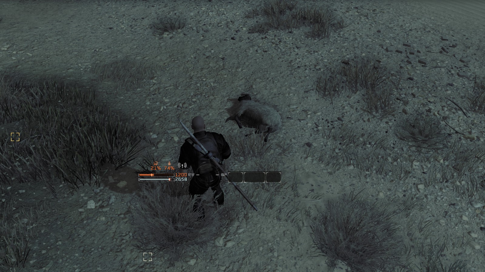 Making matters worse, the game glitched out and wouldn’t let me select the spear on my back during the early portions of the game for no apparent reason. This meant I had to run around trying to beat sheep to death with my fists so that I didn’t starve … which obviously didn’t work. Time to start over from the beginning and watch all those cut-scenes again to fix the problem.