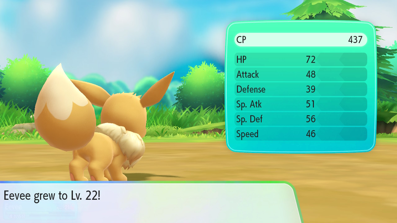 Like Pokemon Yellow, your partner Pokemon can’t evolve. But your starter Pikachu and Eevee receive huge stat boosts, plus Eevee can learn a water, fire, and electric type move from a tutor in Cerulean City, so you aren’t at any real disadvantage.