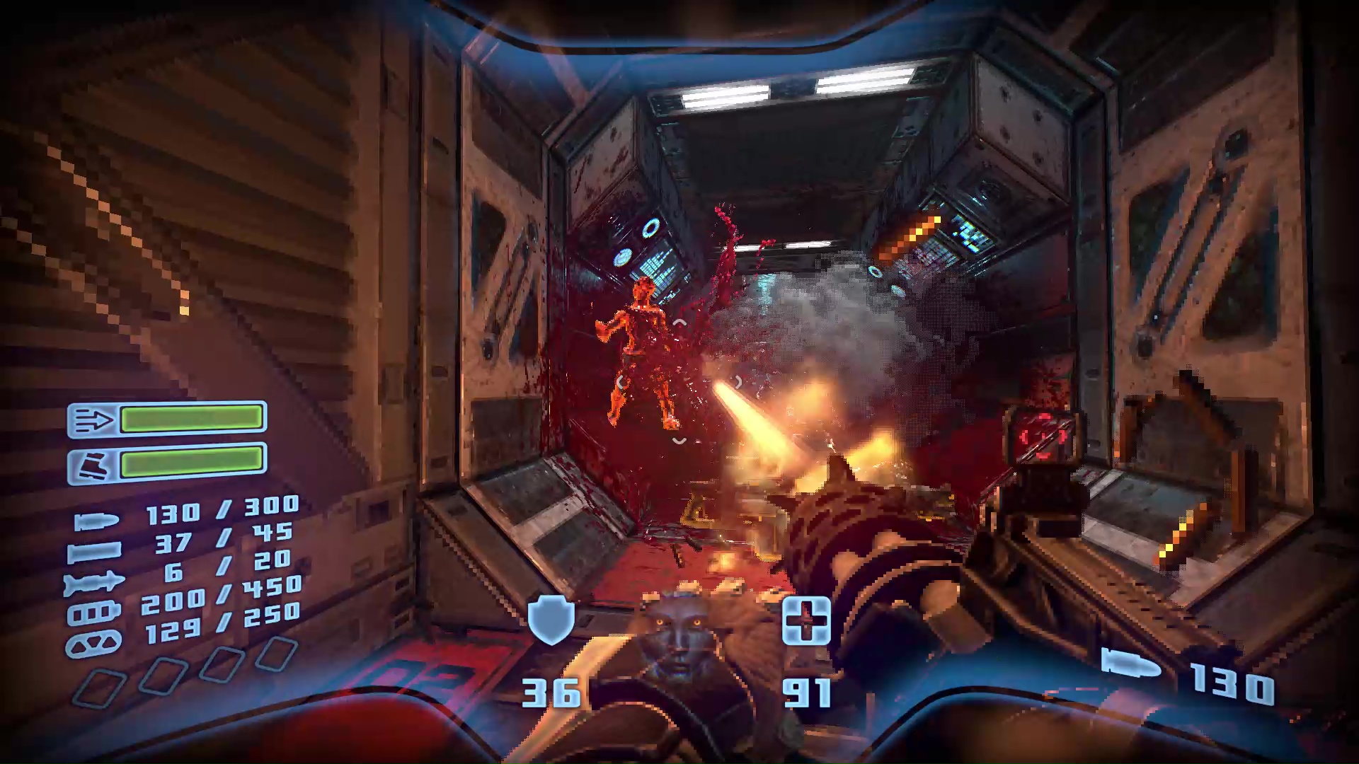 Prodeus sets itself apart from Doom in a lot of little ways. The soundtrack is heavy industrial; the stages are nicely cluttered and vertical; and every weapon has a useful alt-fire mode. Exploring each level reveals hidden ore samples you can exchange for upgrades, like a double-jump or the weirder guns.