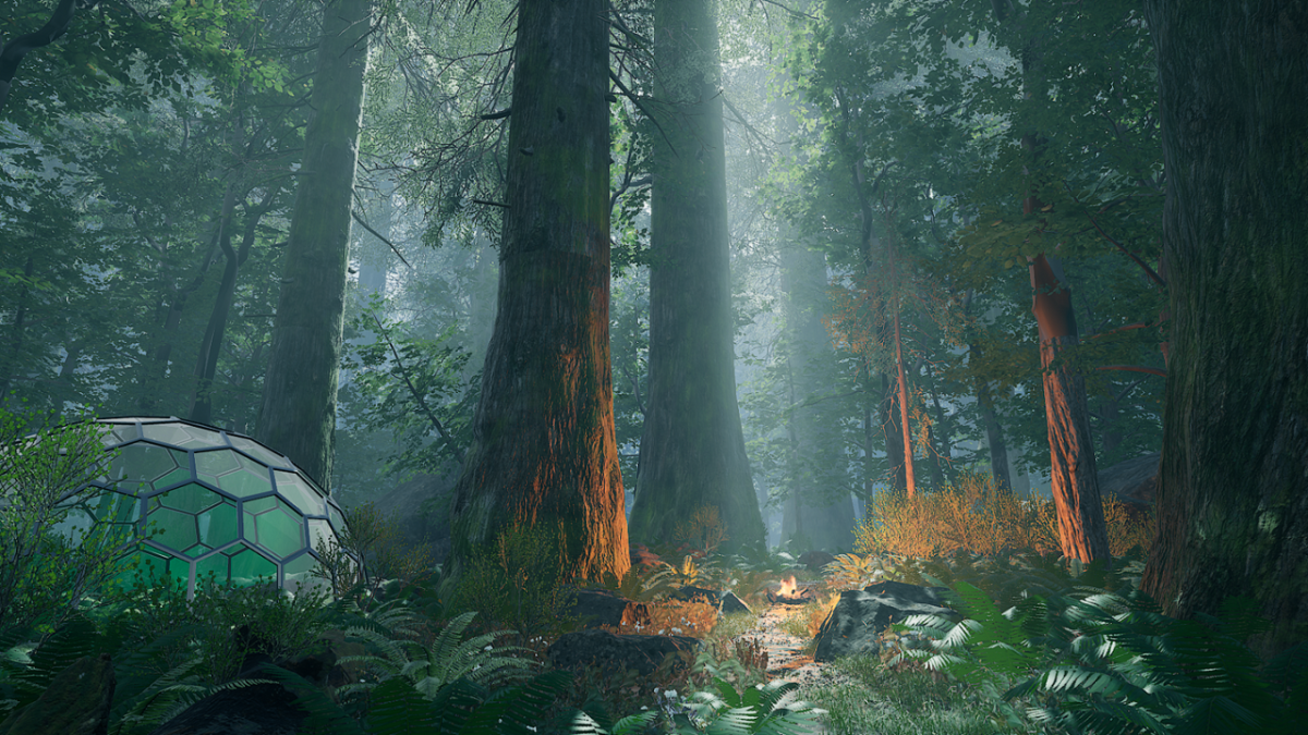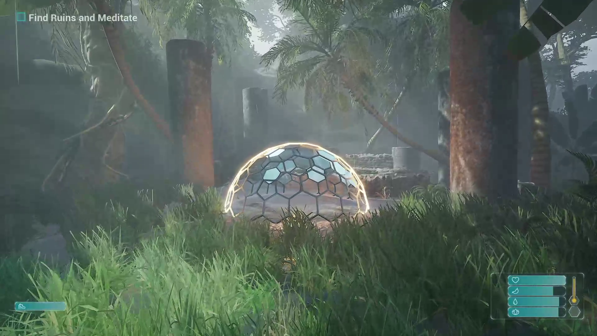 As Spirit dwindles, you must seek out meditation points across each of the biomes to replenish it. In these cerulean geodesic domes, you’ll take a breath to relax and contemplate the world around you, following on-screen prompts to inhale and exhale, providing real-life calming benefits not often found in video games. To take things further, each biome has three well-hidden Arcadian ruins that must be discovered to unlock more crafting and building recipes and to reach subsequent biomes to finish the game.