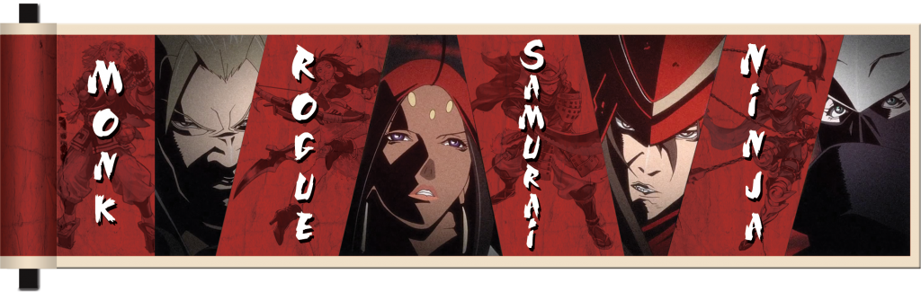 The Monk enters the battle due to his search for his sister, and any spell he casts imbues his weapons with elemental damage. The Ninja has an unknown grudge, and all spells cost only 20 Ki. The final character is the Rogue, who hunts demons and she can use support spells indefinitely.