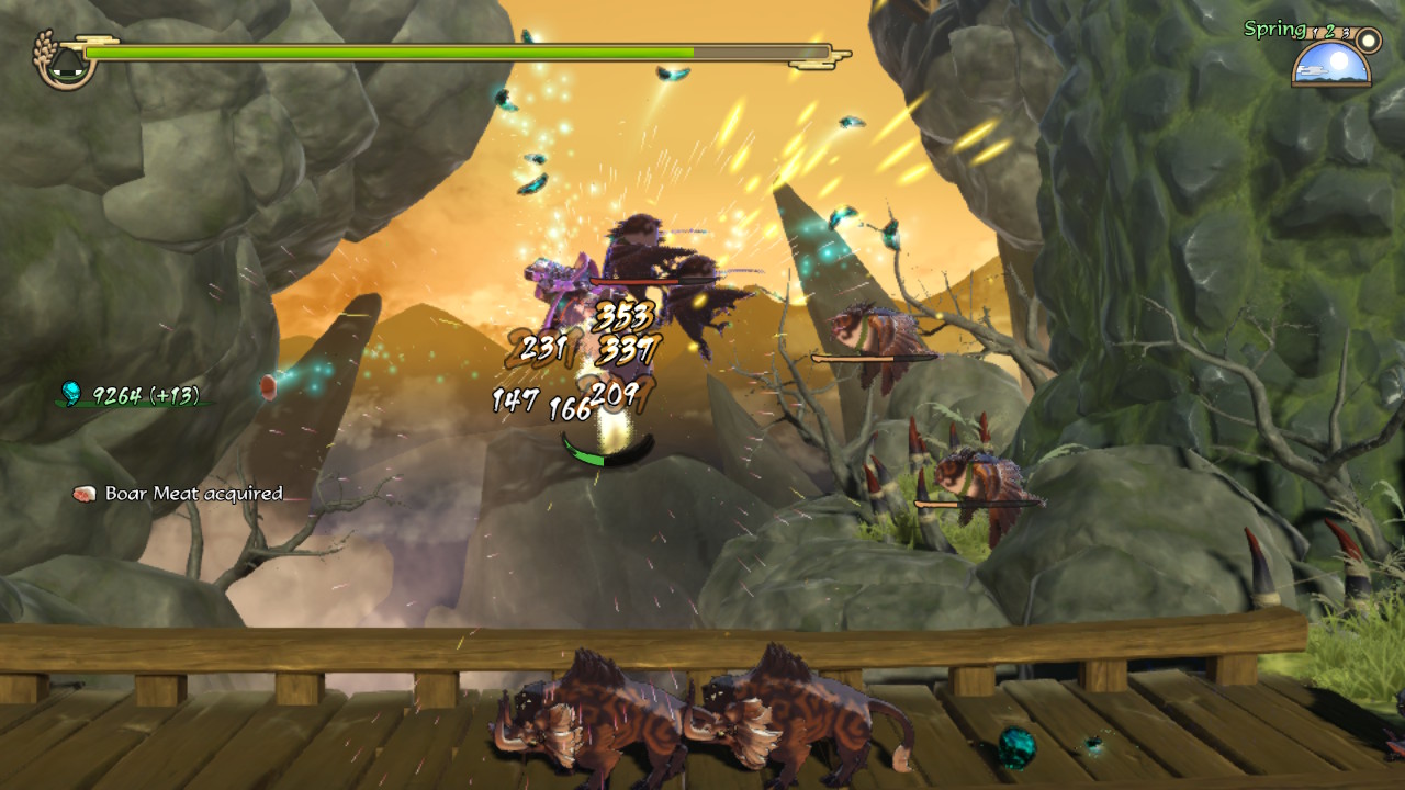It helps that Sakuna is stunningly beautiful. The stages themselves might be fairly basic, but the backdrops and the farm at the pass are pure eye candy. Handheld mode on the Switch version isn’t quite as striking as docked mode — or maybe it’s just because it looks better on a bigger screen — but it still looks amazing either way.