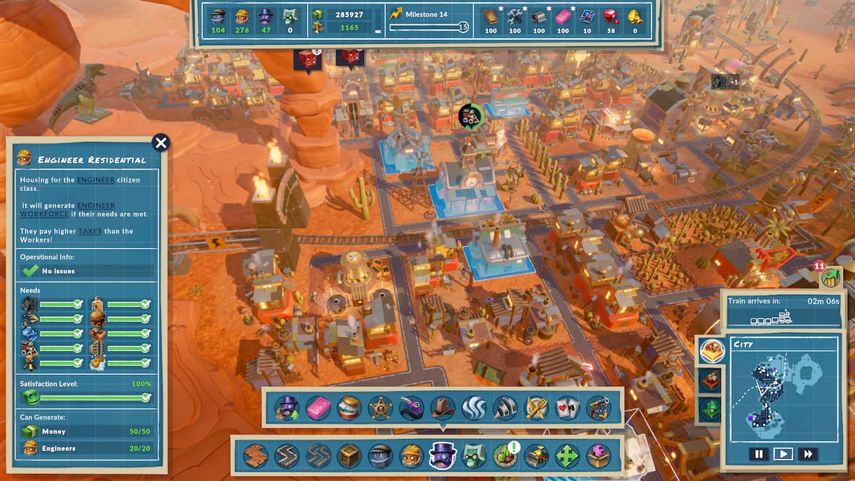As you progress and grow your settlement, SteamWorld Build will give you many milestones to complete. These can be unlocked by completing certain goals, such as unlocking the aforementioned Train Station or by upgrading buildings and adding more steamfolk to the city. These challenges give you access to different areas that are initially locked when you start a map, such as unlocking additional building areas automatically.