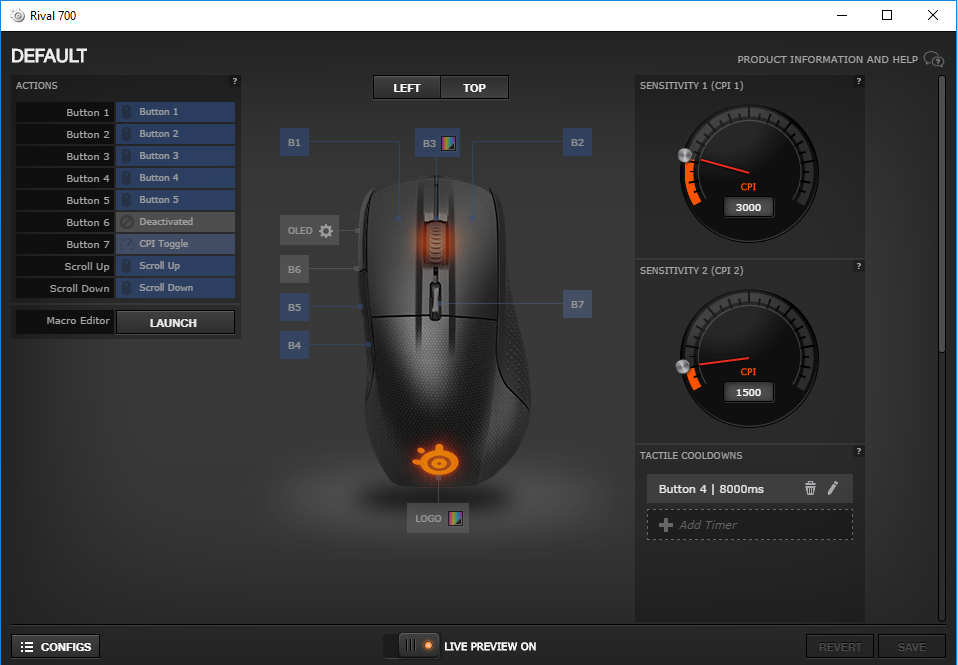Like many modern mice, the Rival 700 features myriad customization options, some right out of the box and others after you’ve downloaded SteelSeries’ Engine 3 software.