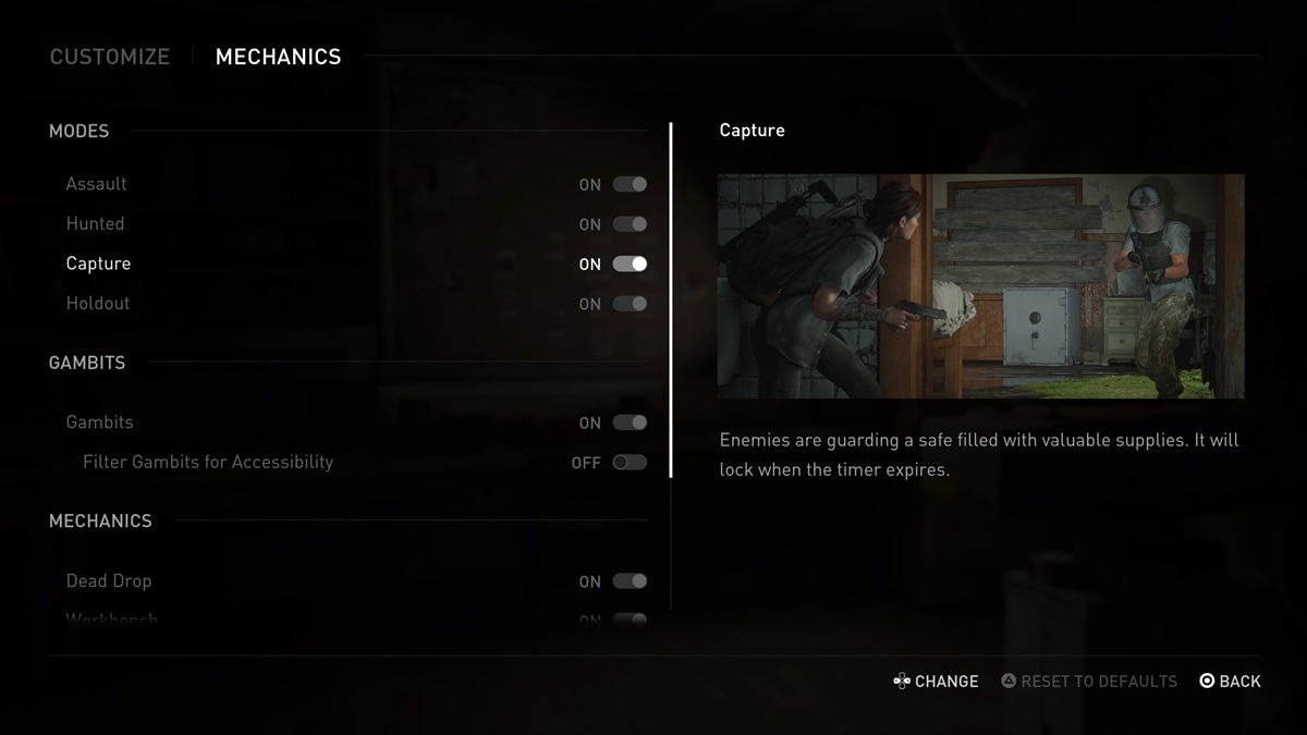 Assault pits you against waves of initially unaware enemies that you have to eliminate. Hunted pits you against enemies that know your position and actively hunt you down. Capture tasks you with reaching a guarded safe to get its resources before time runs out. And Holdout asks you to protect an ally against swarms of infected.