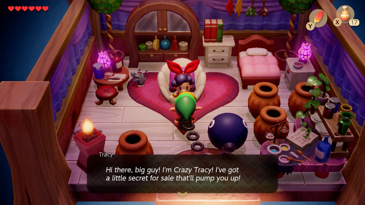 The village dog lady keeps bloodthirsty but fashion-conscious Chain Chomps for pets. There’s a starving alligator who’s also a banana salesman. Old Man Ulrira won’t talk in person, but he’s Koholint’s version of Dear Abby, and the goat (ghost?) writer Christine sends letters to her beloved Mr. Write but won’t reveal she’s a goat.