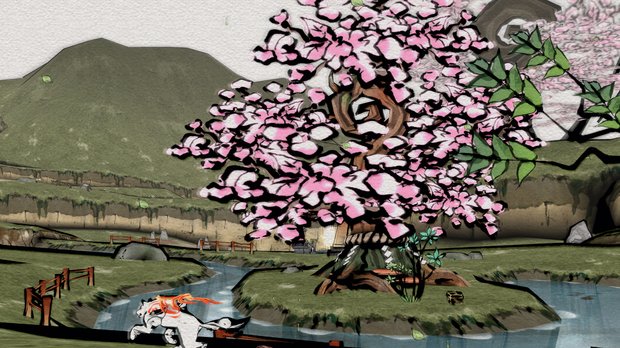 There are thirteen different brush techniques that you unlock throughout the course of the game. The one I just described is Rejuvenation, also used on broken bridges and anything broken or missing. Bloom brings a wilted tree back to life. Power Slash is a useful battle technique. Cherry Bomb blows up cracked walls so you can pass through. Catwalk allows you to climb walls. There are many others.