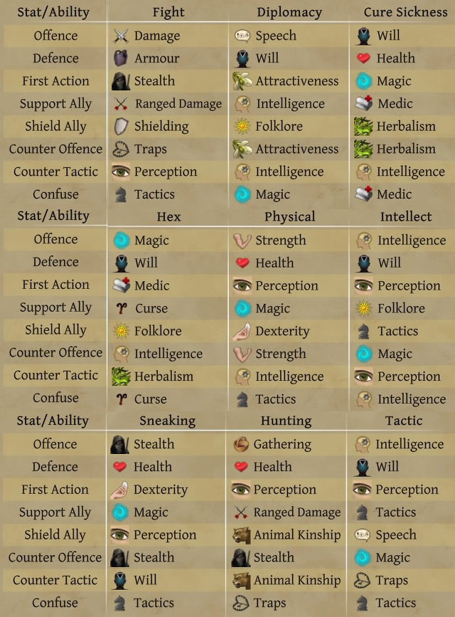There are 9 types of Challenges, each of which use different stats to determine your combat efficacy.