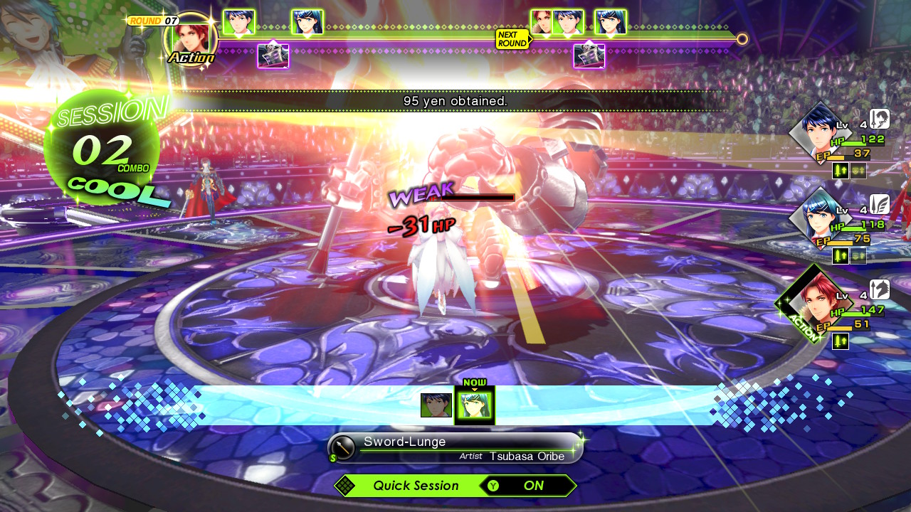 In SMT, if you exploit an enemy’s weakness, you get one or more additional actions. In TMS, you don’t. What you do get after the tutorials is a Session attack, which links with another party member’s skill to deal additional damage.