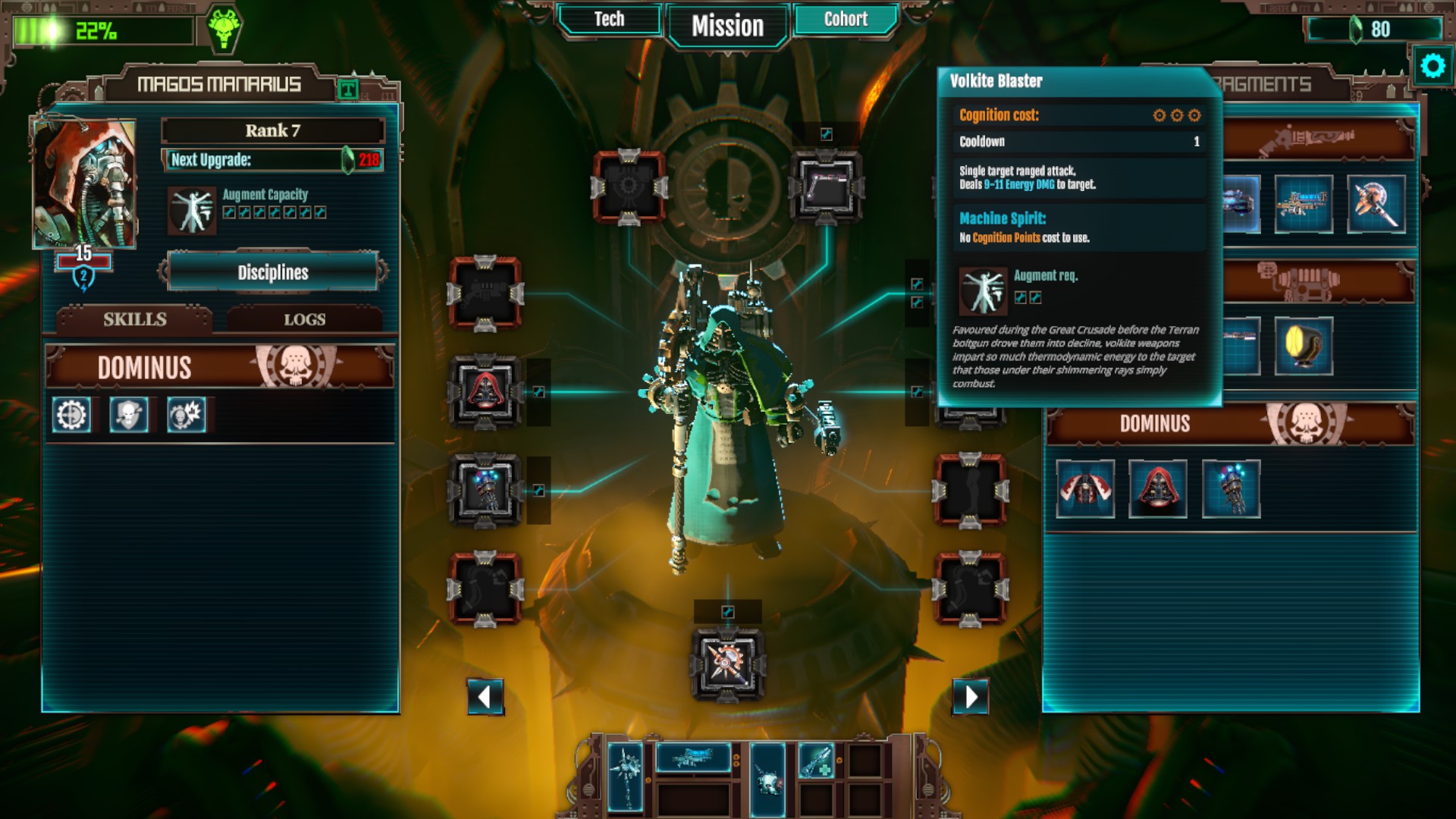The game casts the player in the role of Magos Dominius Faustinius, part of the Adeptus Mechanicus, a faction of Mars-based mechanically augmented humans tasked with stewarding technology both lost in mankind’s past and found around the universe. These are the guys who, in 40K, build all that cool tech that you see in other, less obscure 40K licensed titles like the Dawn of War series.