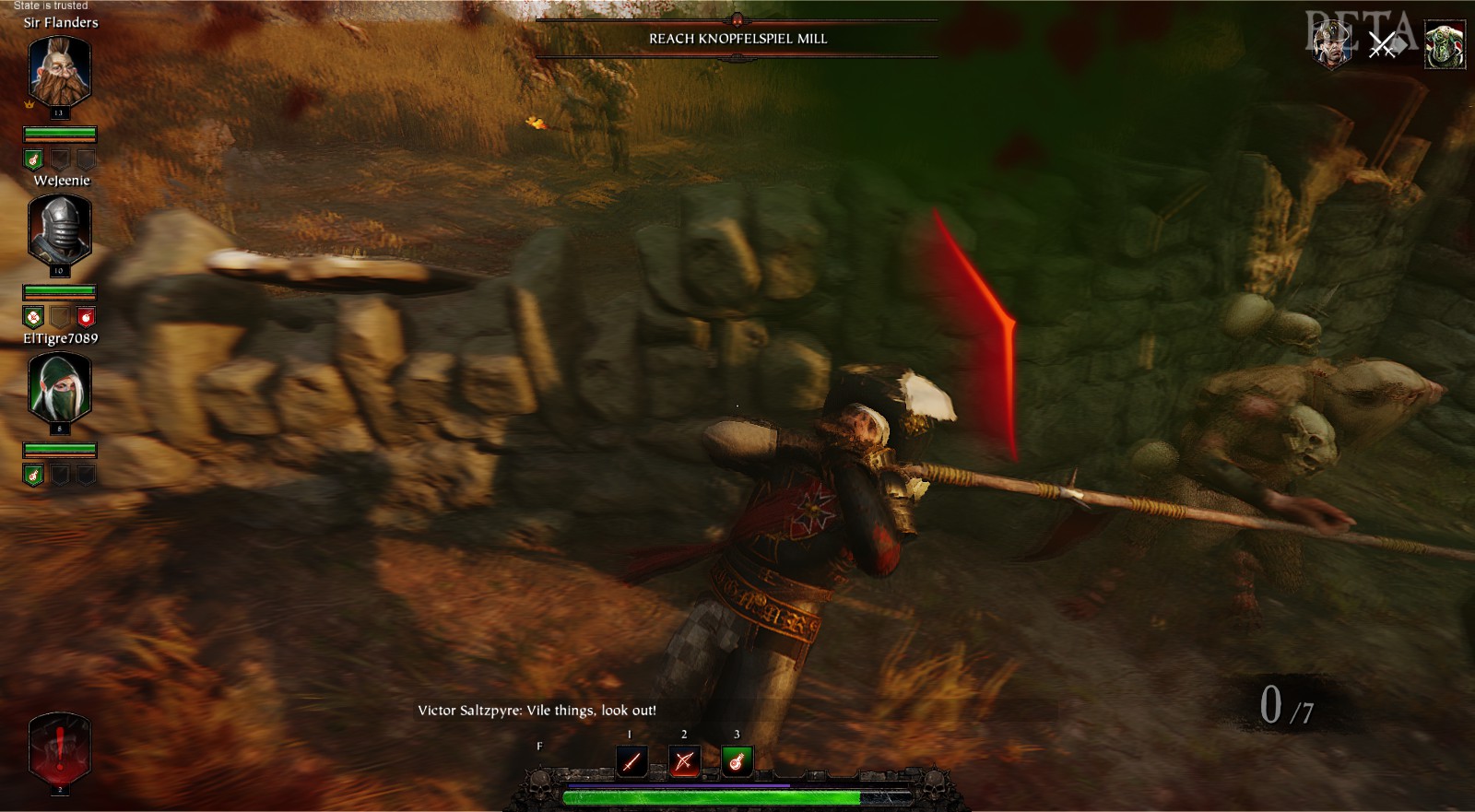 The Skaven gunner wielding a warpfire gatling gun is flat-out amazing and takes some serious cooperation to take down, while the evil rat with a pressurized warpfire weapon (like a medieval rendition of a flamethrower) belches out fiery blasts that push you back, so a frontal assault is doomed unless you time it perfectly between reloads.