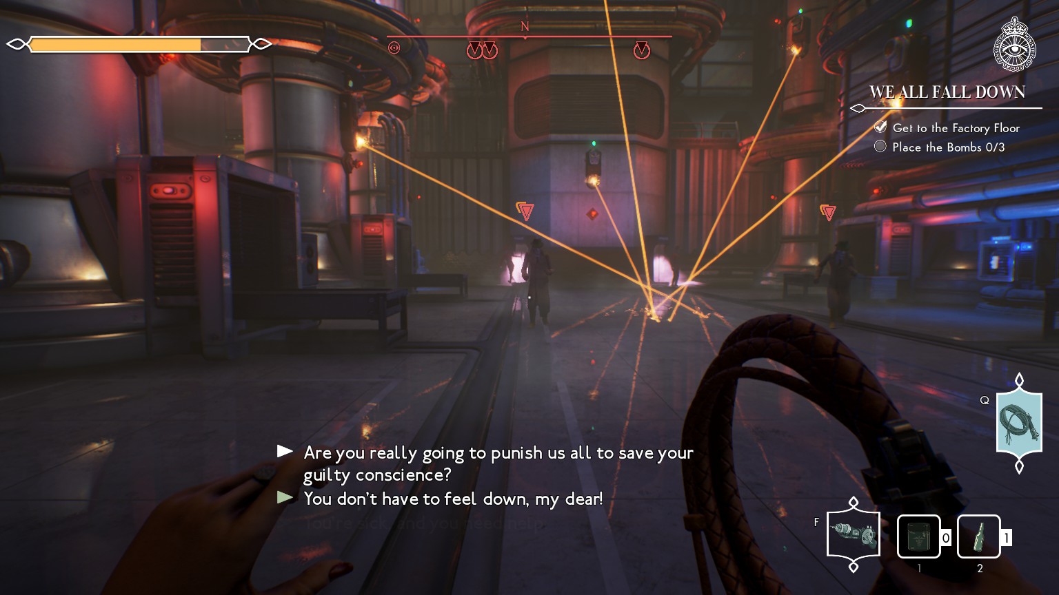 With the base gameplay loop heavily modified, all of the crafted weapons and clothes you relied on previously are gone. This time, you get a whip and stun gun to utilize. The latter brings some interesting capabilities, since it can shock bobbies or even be used to temporarily disable various electrical equipment like security devices.