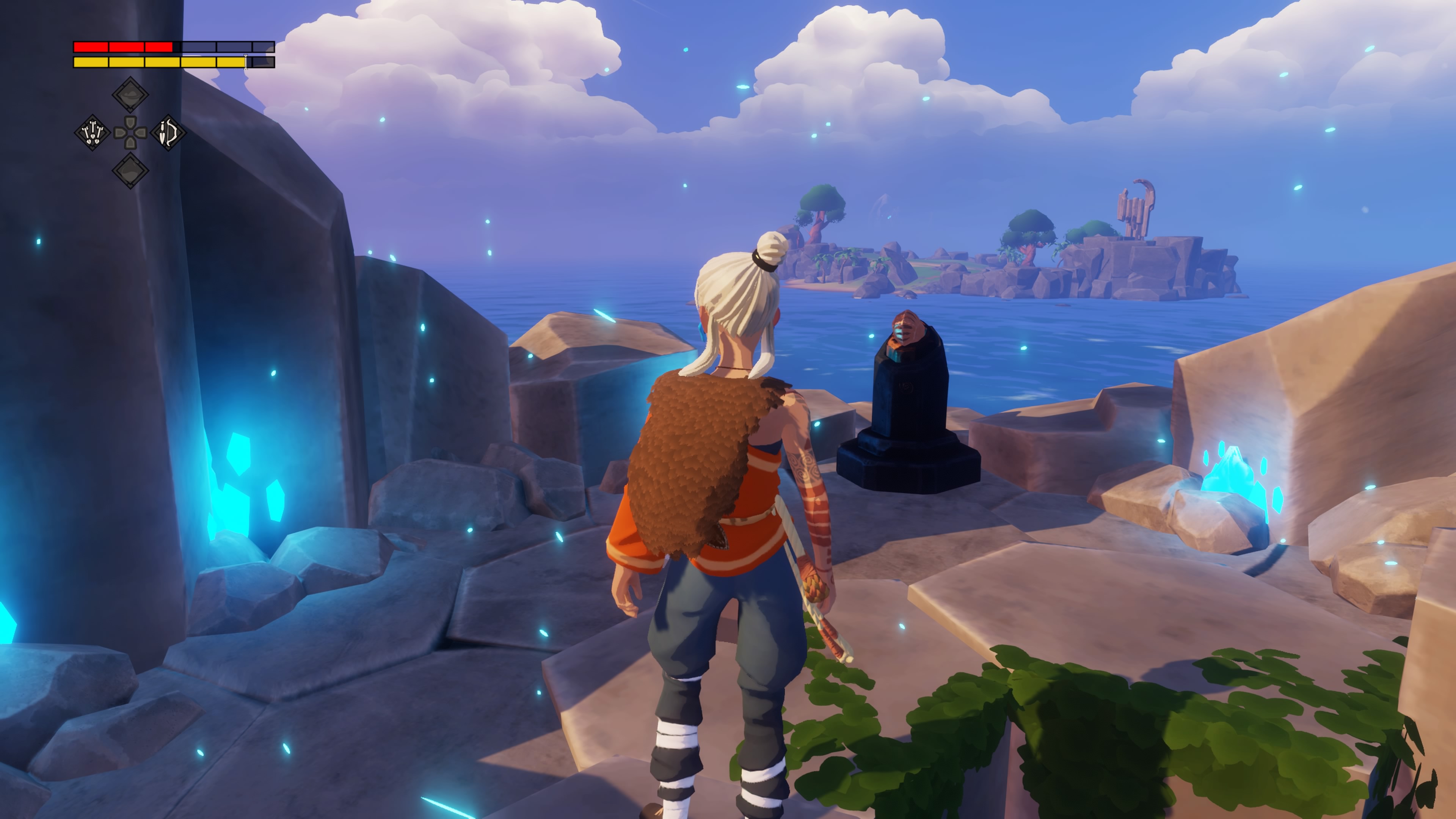 One thing that’s immediately apparent, even if the story isn’t, is Windbound’s stunning presentation, showcasing a vibrant, colorful world and beautiful blue ocean to explore. It’s all accompanied by a lovely piano-backed soundtrack.