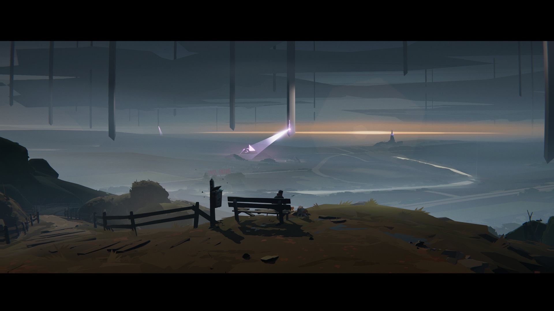 Somerville is a cinematic experience to a fault, all widescreen bordered display and slow panning camera that’s forever out of your control. It’s refreshing playing through an entire experience directed in a cinematic sense, and the long cuts of our long-suffering dad strolling desolate farmlands as the purple lights scan for life in the distance bring to mind the style of Alejandro Iñárritu or even Béla Tarr.