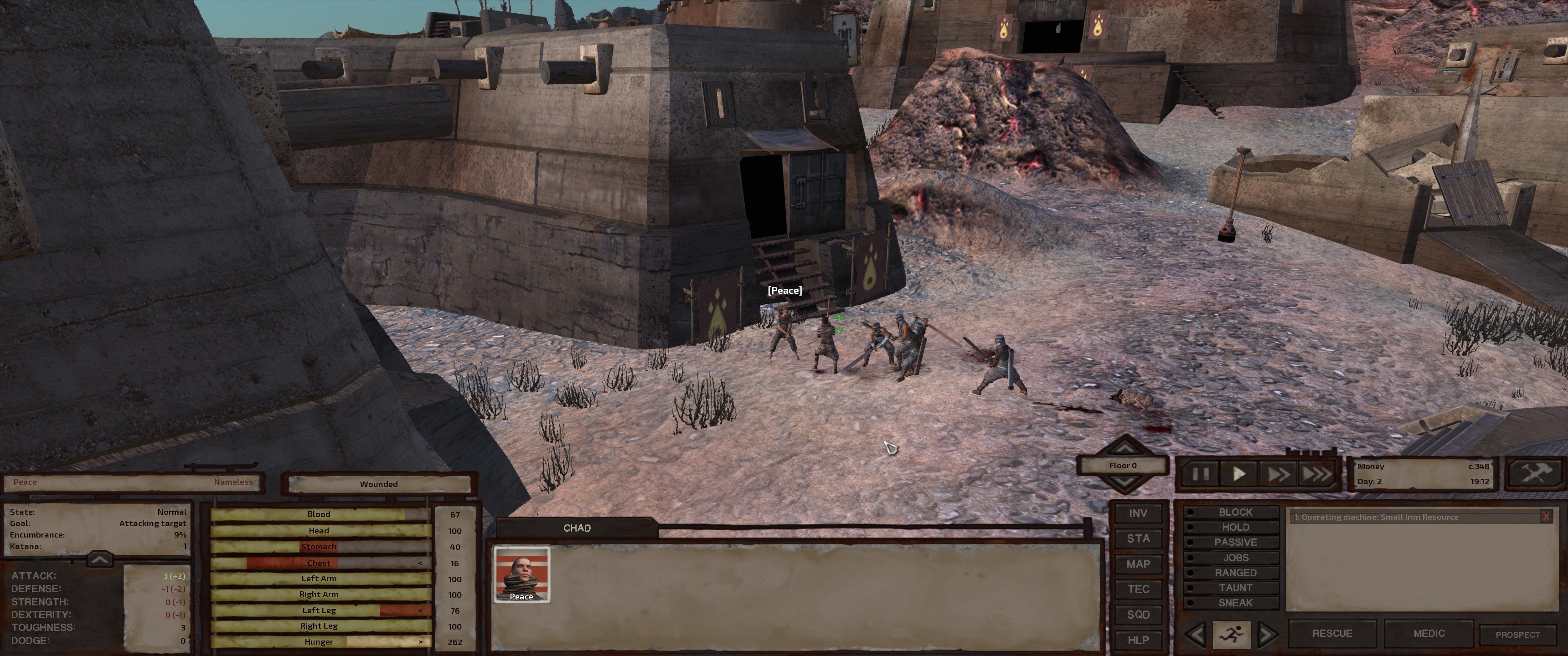 “Cheese” is being used as a verb in this case, to be clear. Right after character creation, Kenshi tells you that you aren’t special, and it means it. You stand no chance whatsoever against bandits — or even against the wolf/dog/hyena things that roam the sand dunes — until you’ve spent a good deal of time training up your combat skills.