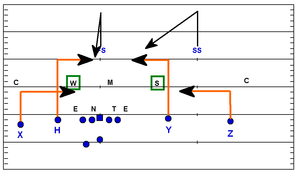 As it states above, the Texas concept involves the running back tracing an angled route around the offensive line and over the middle, while a receiver or tight end runs either a seam route or a deep dig route.