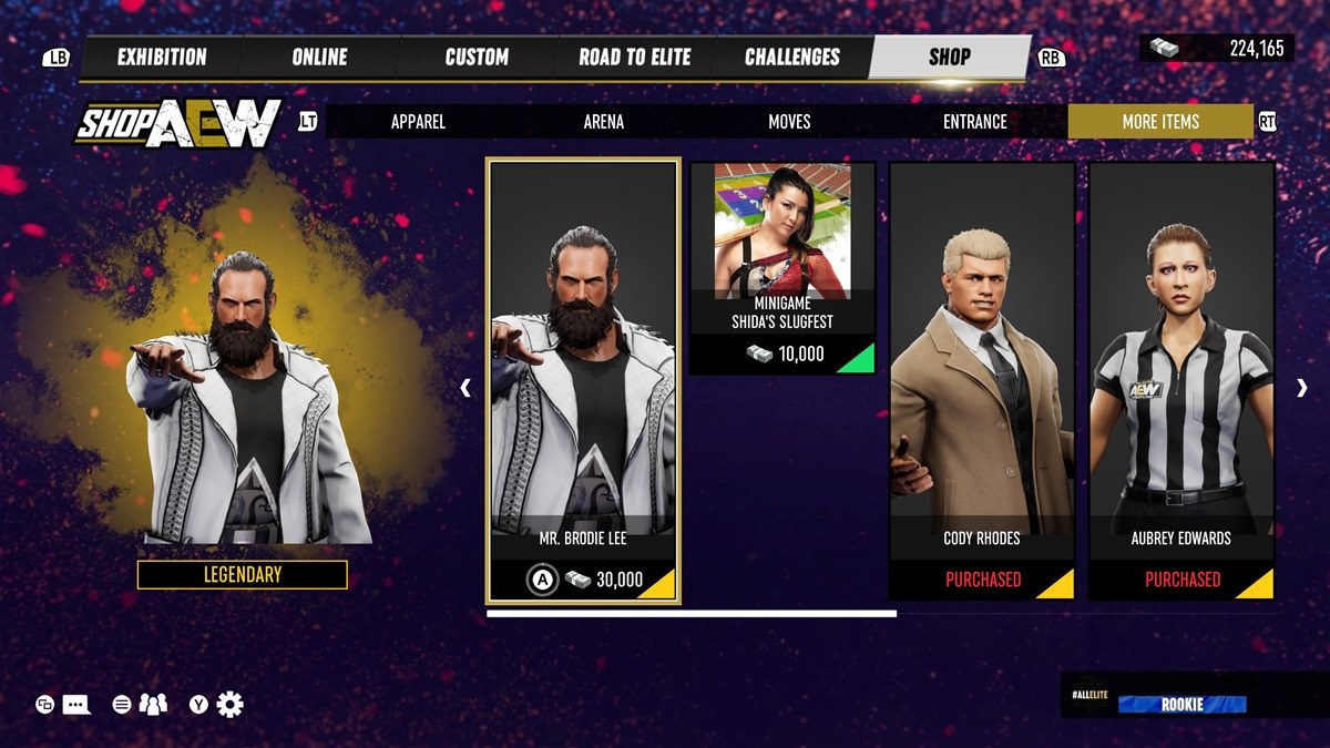 With the above steps completed, you’ll become the TNT Champion, though it’s hardly referenced throughout the rest of the mode. The important thing, however, is that you’ve finally unlocked Brodie Lee in AEW: Fight Forever. All that’s left is to go to the Shop menu and purchase him for 30,000 credits.