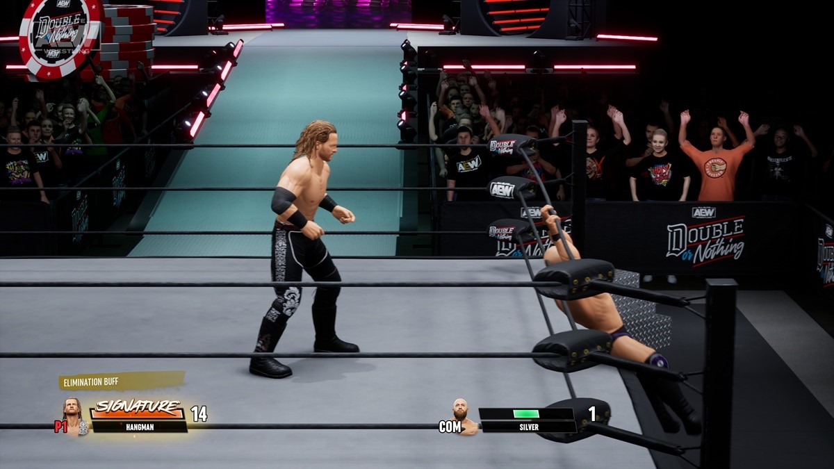 Once you reach the Full Gear PPV, you’ll have a 1-on-1 bout against Brodie Lee. John Silver is in his corner, though he’d hardly cause a distraction. Simply continue with your offense until you get your signature. Spam it a few times, then pin him when his meter/gauge goes blue.