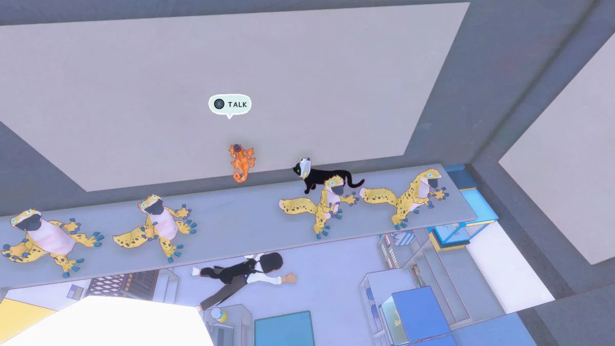 | #4 | Lizards used to rule the Earth (and will again — just mark my words!) but, until then, there’s World of Gecku, a store where I will now expect you! | ![]() | Chameleon kept this hint simple. World of Gecku is just across the street from your apartment, marked by a gargantuan Gecku statue. You’ll find him above a shelf on the back wall of the store. |
