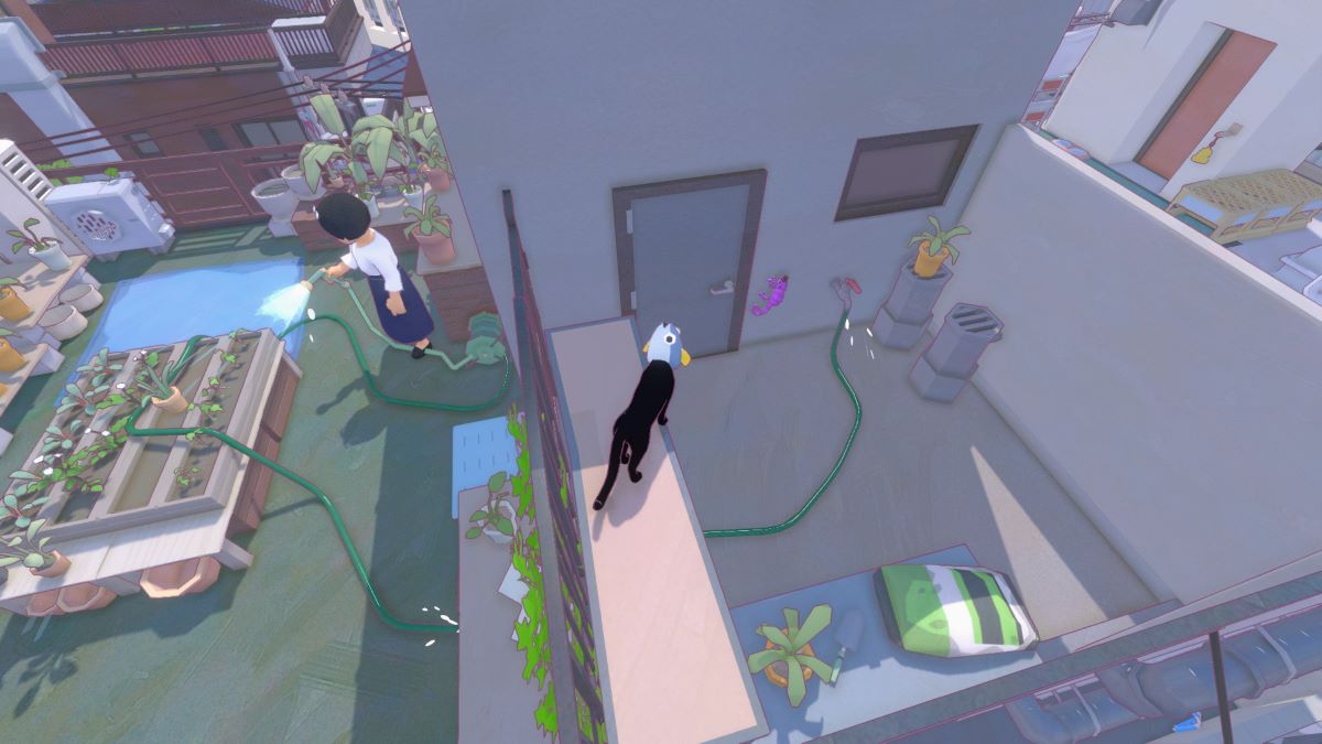 | #5 | So far, I’ve been far too merciful. So let’s go somewhere way more vertical! I’ll be near a rooftop garden past the water-wielding warden! | ![]() | I won’t lie; this spot can be tough to reach. Across the street from the produce stand, you can scale a building with a rooftop deck. This leads to the building next door, where a gardener won’t hesitate to spray you with a hose. To find Chameleon, sneak along the right-hand side of the deck and enter the back gate. You can also turn off the hose (temporarily) to steal a fishy from the kitchen window. |