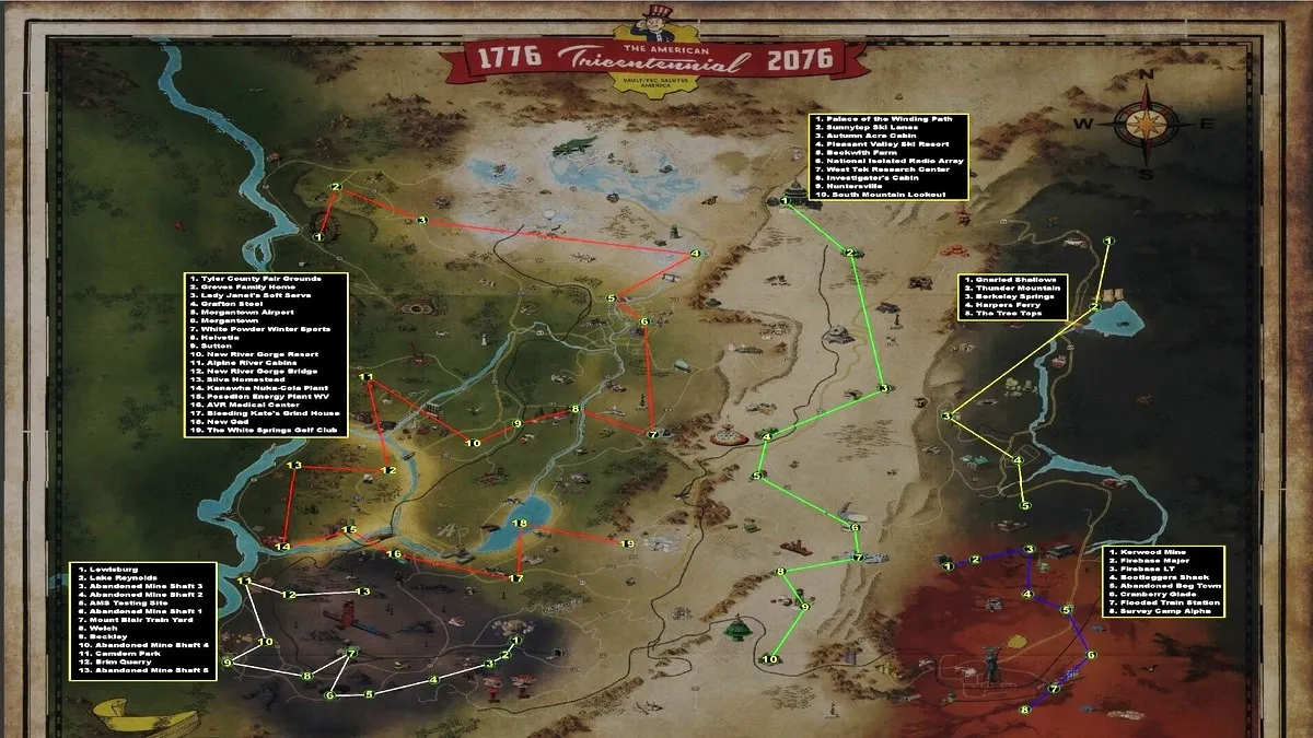 Treasure Hunter Mole Miners can spawn in all locations that regular enemies do. However, there are several locations that you should visit that offer the best spawn rates. In addition, if you’re looking for the best farming routes, than use the above map, created by YouTuber Naked Vault Dweller, for an ultimate farming route for each region of Appalachia. Be sure to listen for the static sound that Treasure Hunter Mole Miners make using a sound machine to find them more accessible.