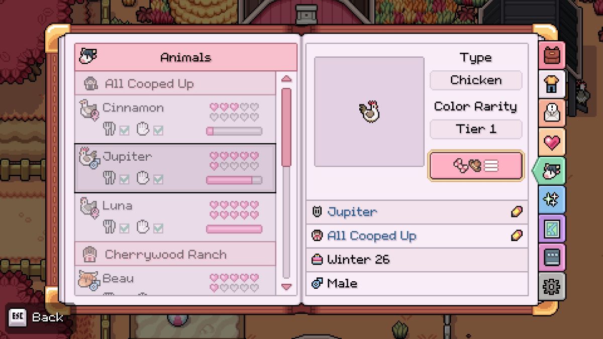 Fields of Mistria features eight types of animals to raise at your farm during Early Access, from traditional cows and chickens to slightly more surprising capybaras and alpacas. Skip ahead with the quick links below to find all the care details for a specific animal or stick around for the complete overview.