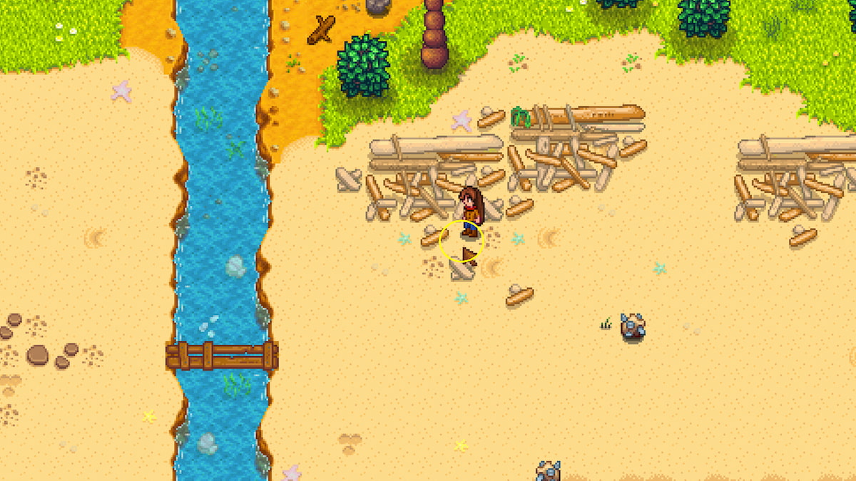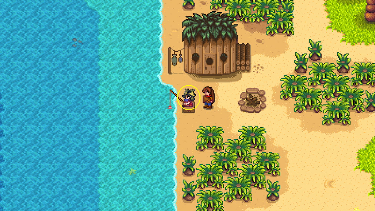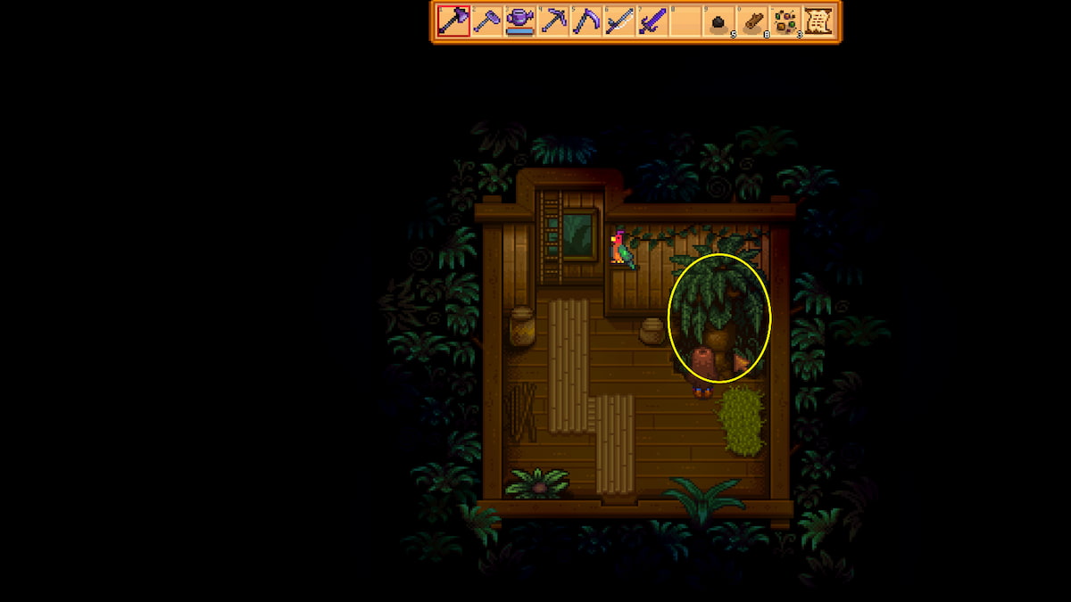- In the ground, north of Birdie’s hut x1 – Use your hoe to dig up the ground above Birdie’s Hut, at the very edge of the dark sand.