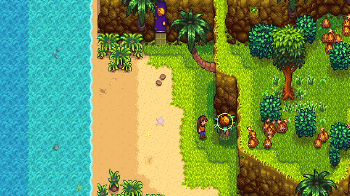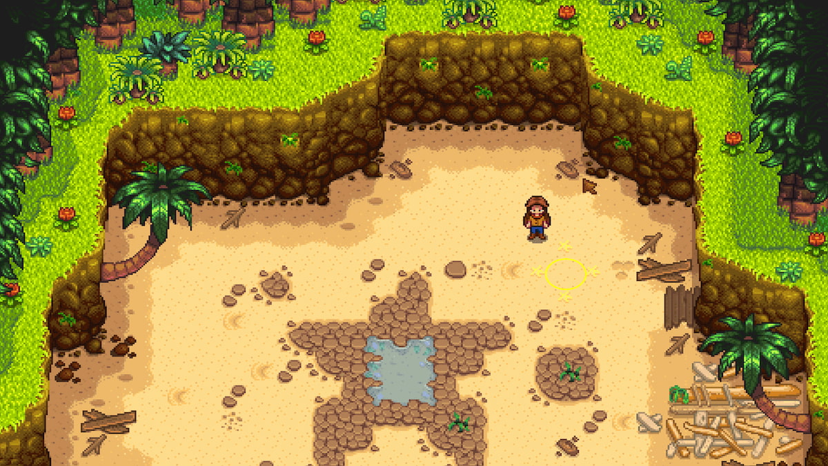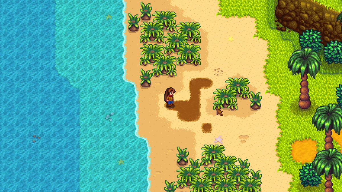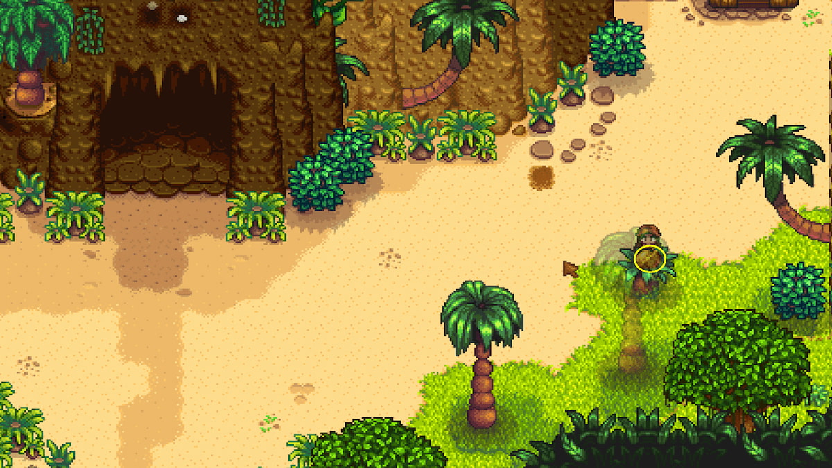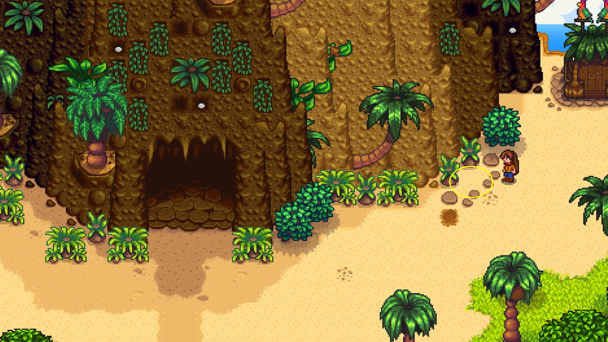 - In the ground southeast of the farmhouse x1 – Look for a little corner of the cliff where there is a palm tree growing out of the cliff, and use your hoe to dig up the ground. It’s the only spot that will let you dig next to the cliffside.