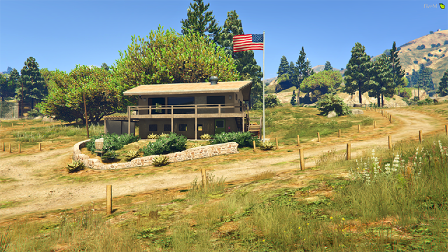 The Beaver Bush Range Station is located at Baytree Canyon Road and Marlowe Drive, in Vinewood Hills. It’s just north of the city. The building is a light brown color with a large patio that wraps around it.