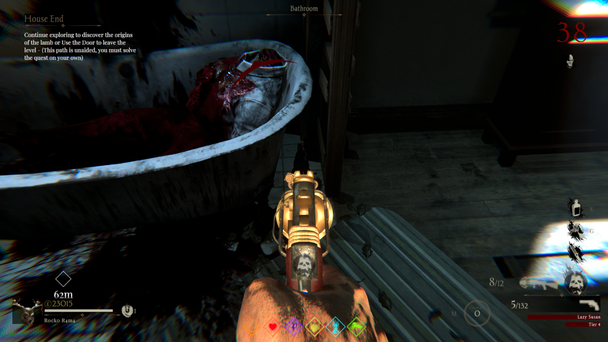 There are fifteen House of the Damned dolls in Sker Ritual, and they all have a shiny golden sheen, making them easier to spot. However, with the dark backgrounds, I recommend increasing your game’s brightness to 200% to make them even easier to find. Moreover, I’ve marked each doll in every screenshot using my weapon’s crosshair. Lastly, match the room’s name at the top of your screen to avoid searching for a particular doll in the wrong area.