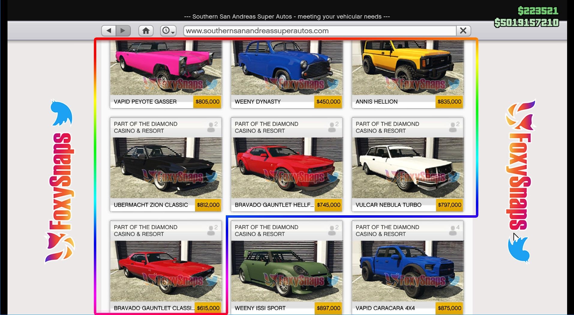 A prominent Grand Theft Auto V dataminer and leaker on Twitter dug these cars and their prices up, even posting pictures of them and their price points. You can check those out below, and be sure to give FoxySnaps some props on Twitter!
