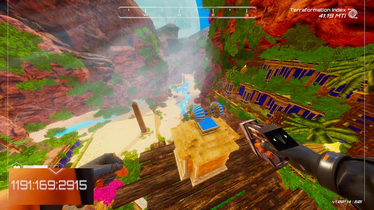 You start feeling the earthquake shortly, which will last until the doors are open. Once they’re open, you’re good to go. Stroll down the path until you reach an enclosure. Be mindful that your jetpack won’t work once you’re in, and you won’t be able to build anything. There are five keys that you must find in Ancient Paradise.