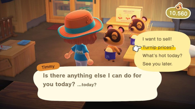 Tommy and Timmy are more than happy to buy your turnips at a range of prices, from double to triple digits. This is why you need to remember the original price or your turnips.