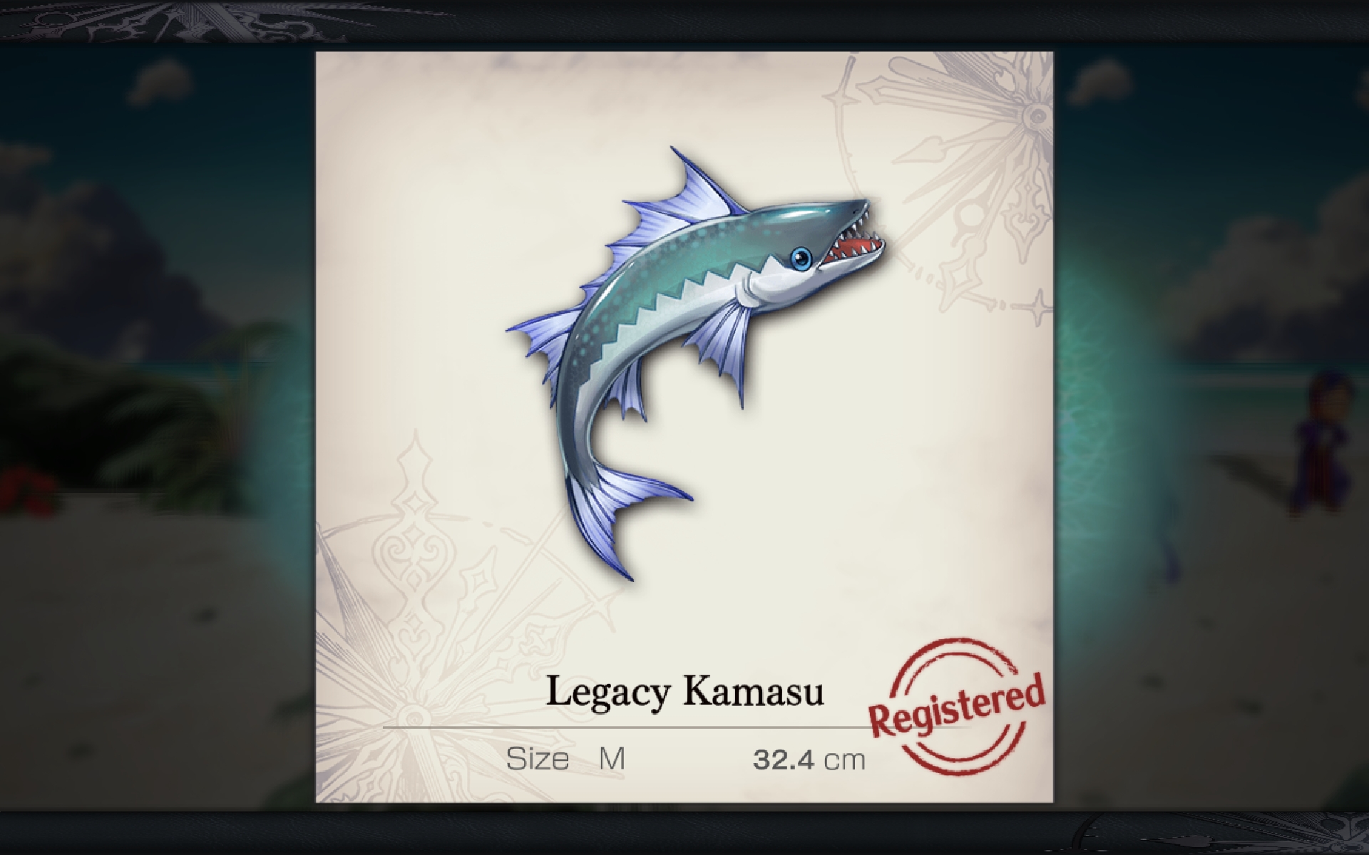 | Legacy Kamasu | Fishing Dango | Lake Tilien (Silent Water Surface Acteul (Spirit’s Shower) Kira Beach |