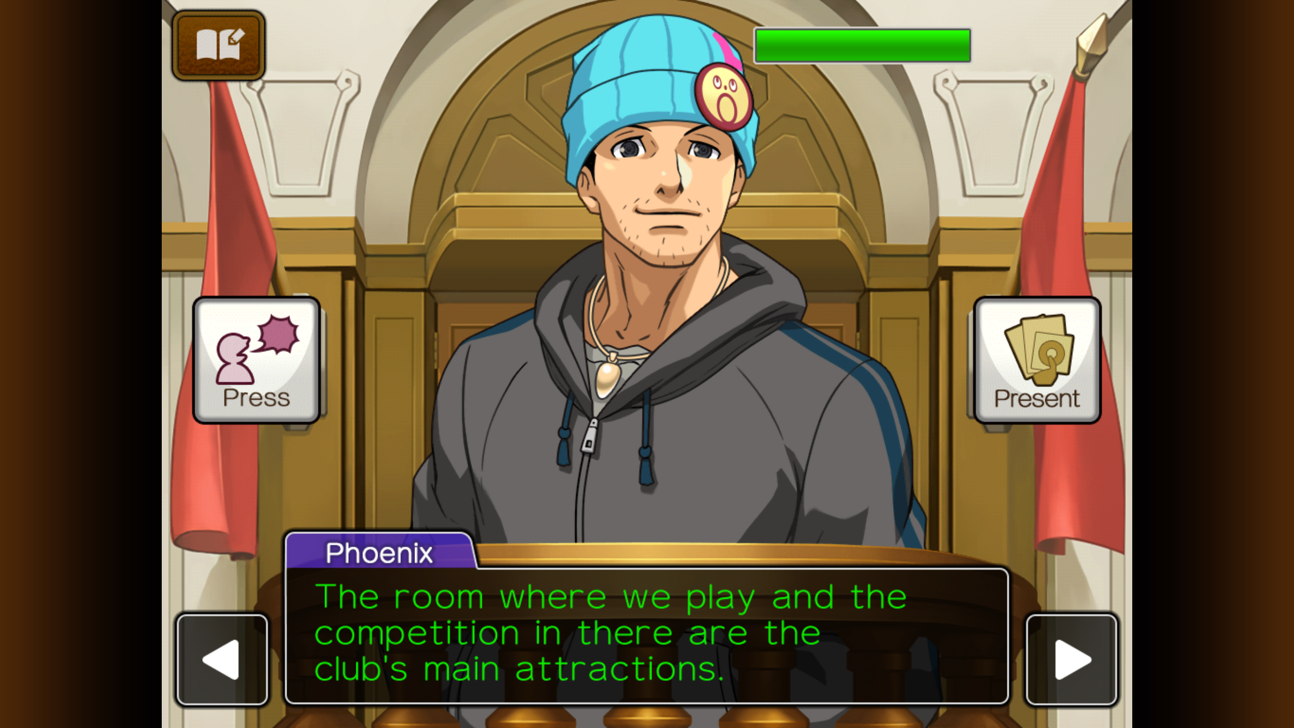 The defendant, Phoenix, gives his testimony on the Competition. Something’s a little fishy about it, but so far everything checks out with the evidence at hand. We must Press him for more information.