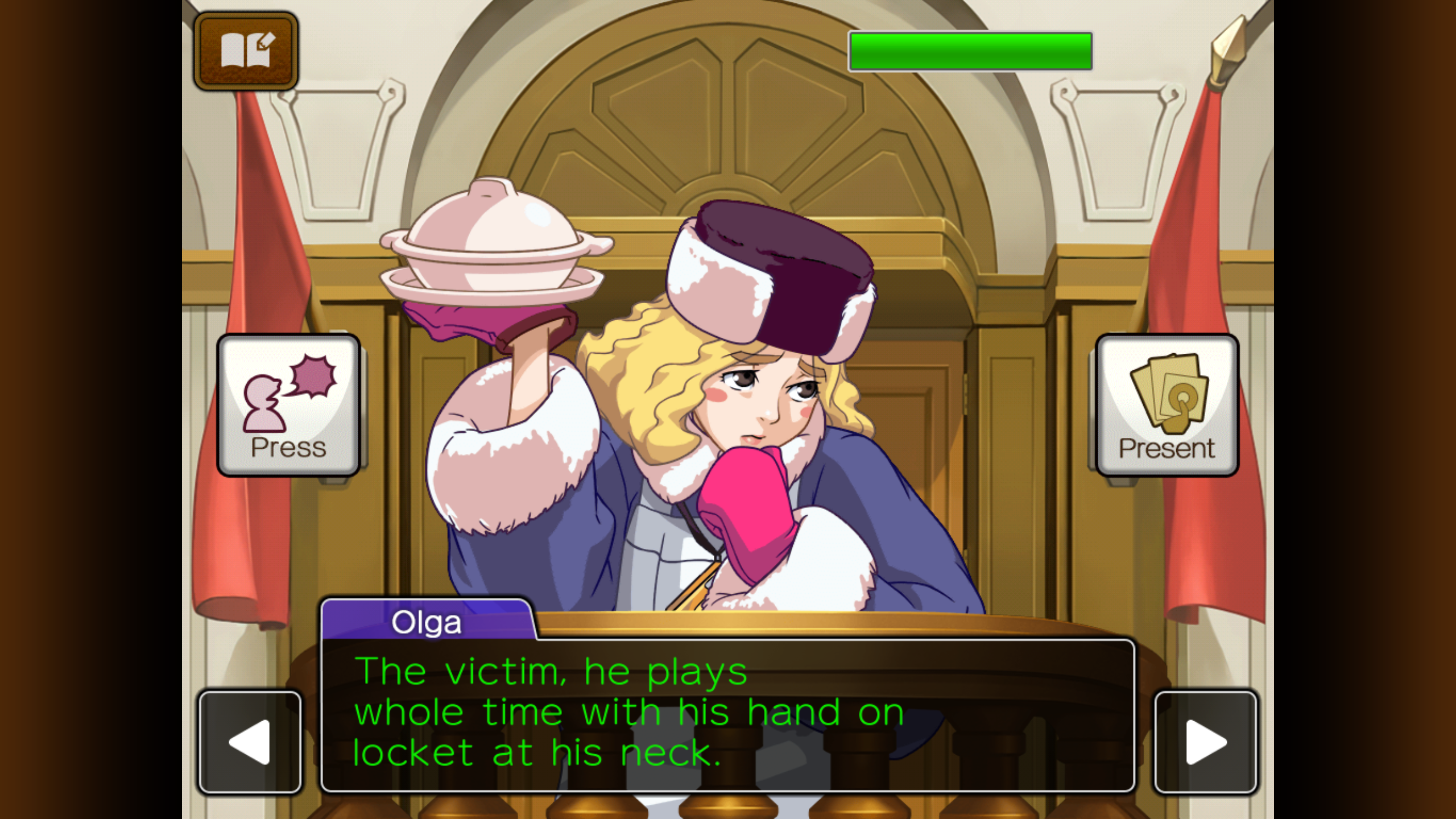 You play as Apollo Justice, a new defense attorney who just got assigned to their first trial — a homicide, no less. It’s your job to Press the defendant and witnesses on the stand for more information and Present contradictions to the court in a process called Cross-Examination. If you want to maintain your edge in the courtroom and defend your client, you can’t afford to mess up.