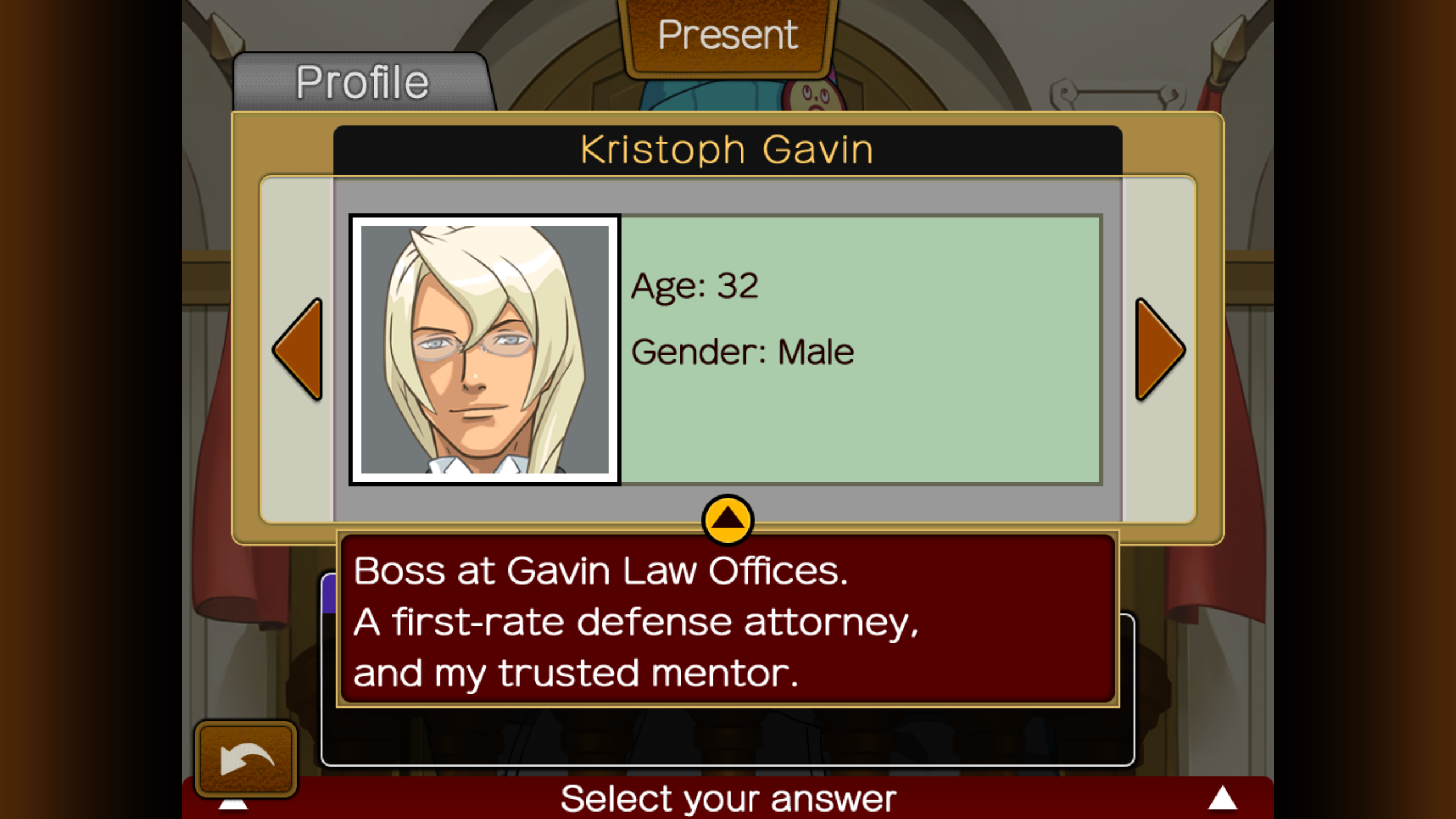 This guide walks you through every Press, Present, and prompt in the Cross-Examination for Turnabout Trump Part 2 in Apollo Justice: Ace Attorney. To avoid spoiling the juicy story as it unfolds, we only present what you need to know to successfully defend your client.