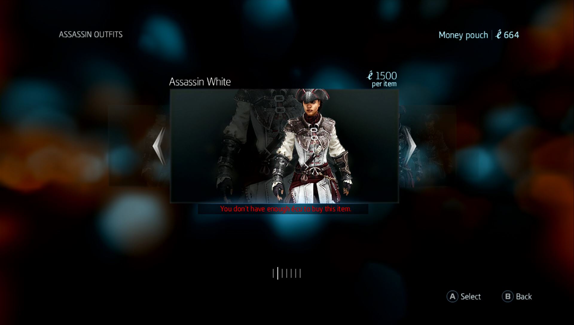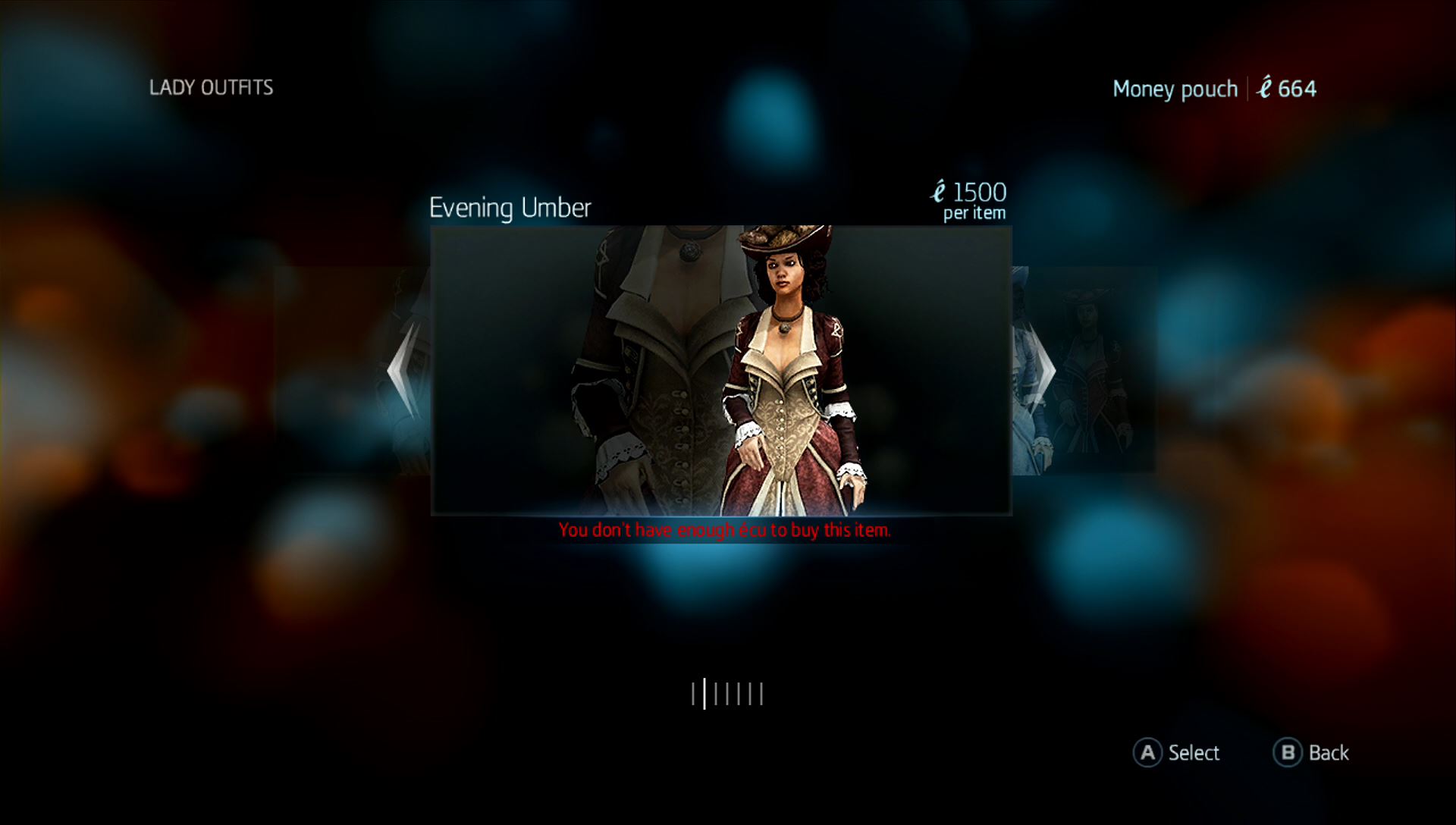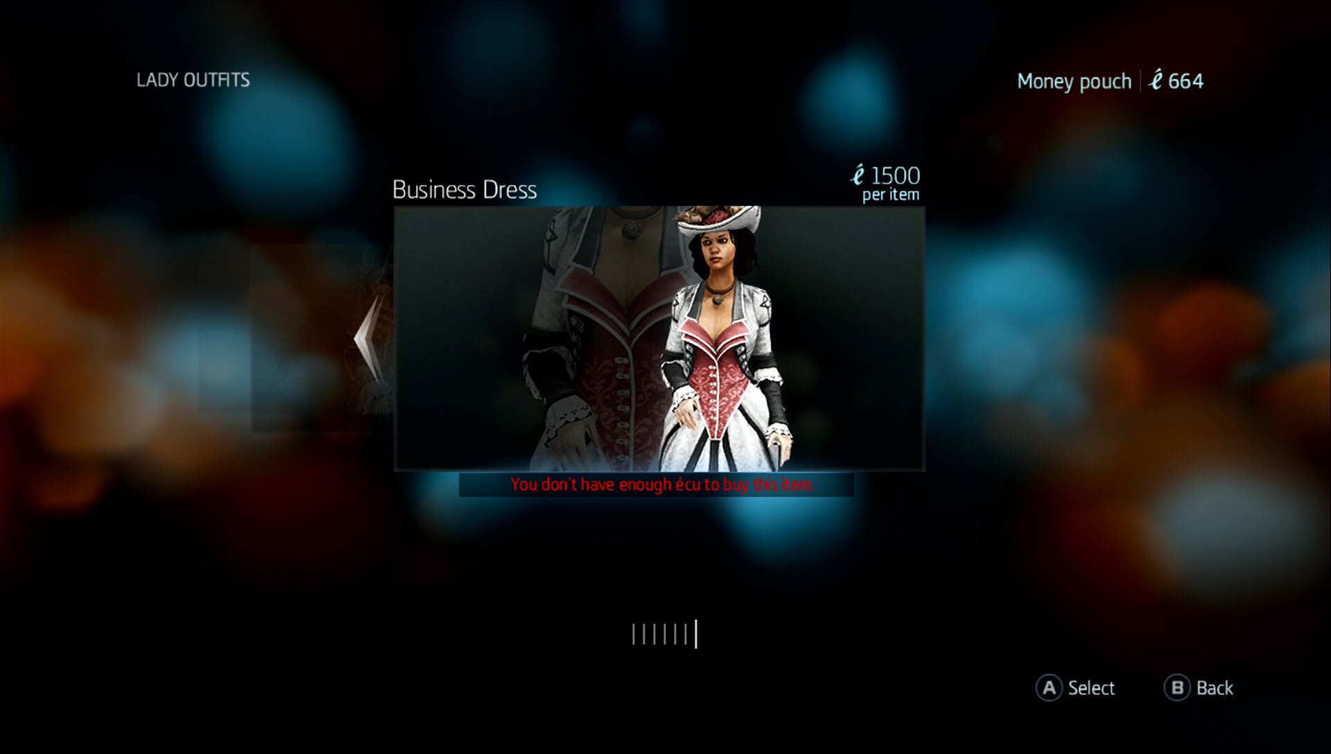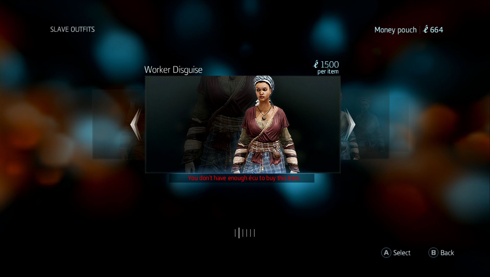 Assassin's Creed Liberation HD provides a lot of customization; most of it turns out to be purely cosmetic, however there are a few functional upgrades such as a cartridge pouch upgrade early game. All items are purchased with écu.