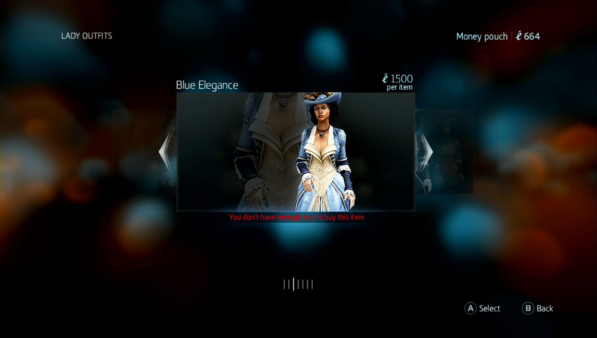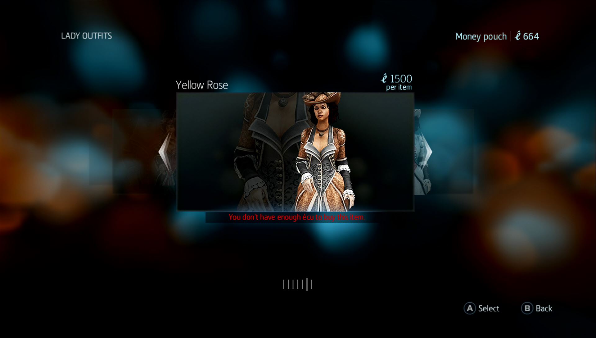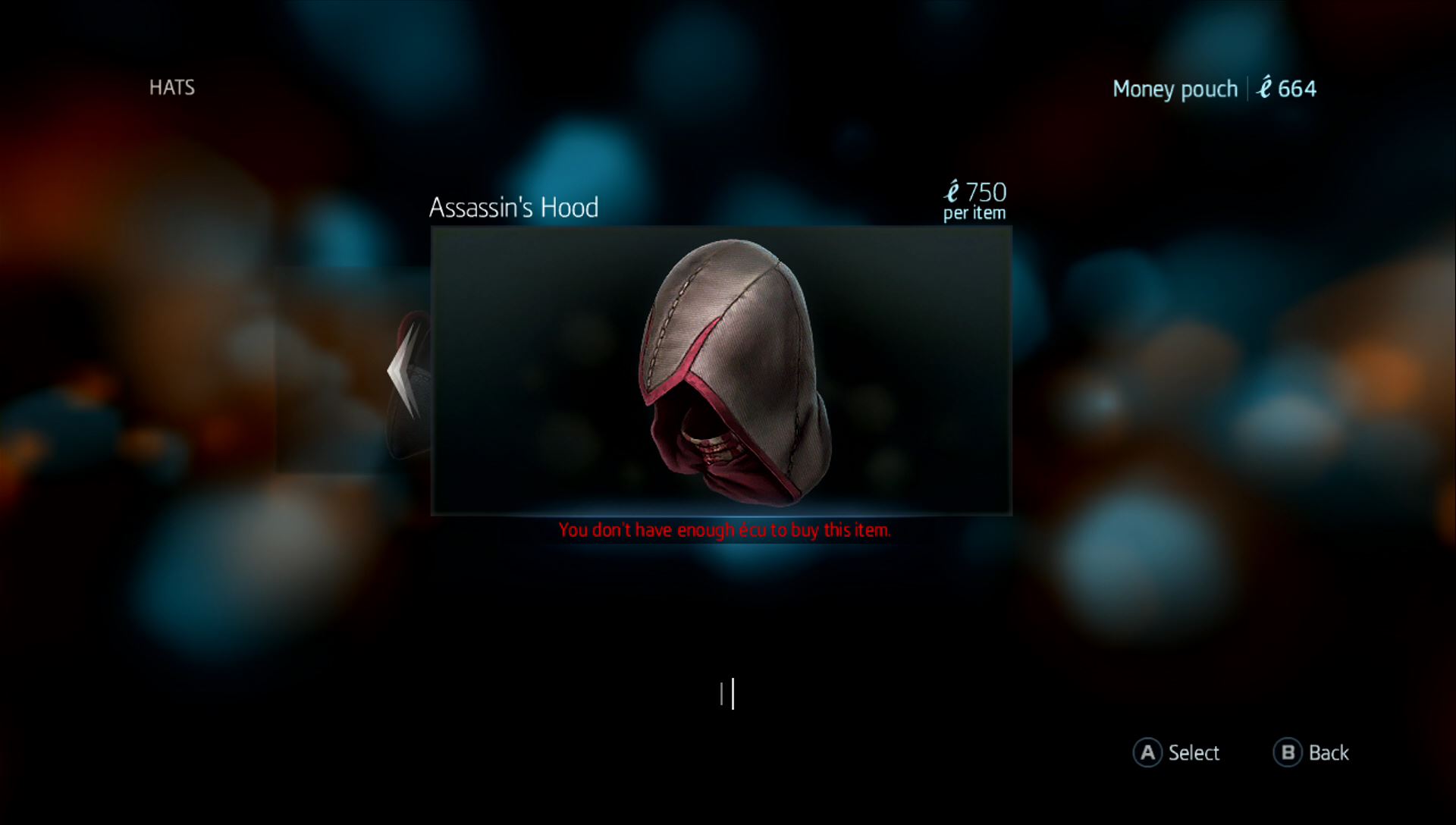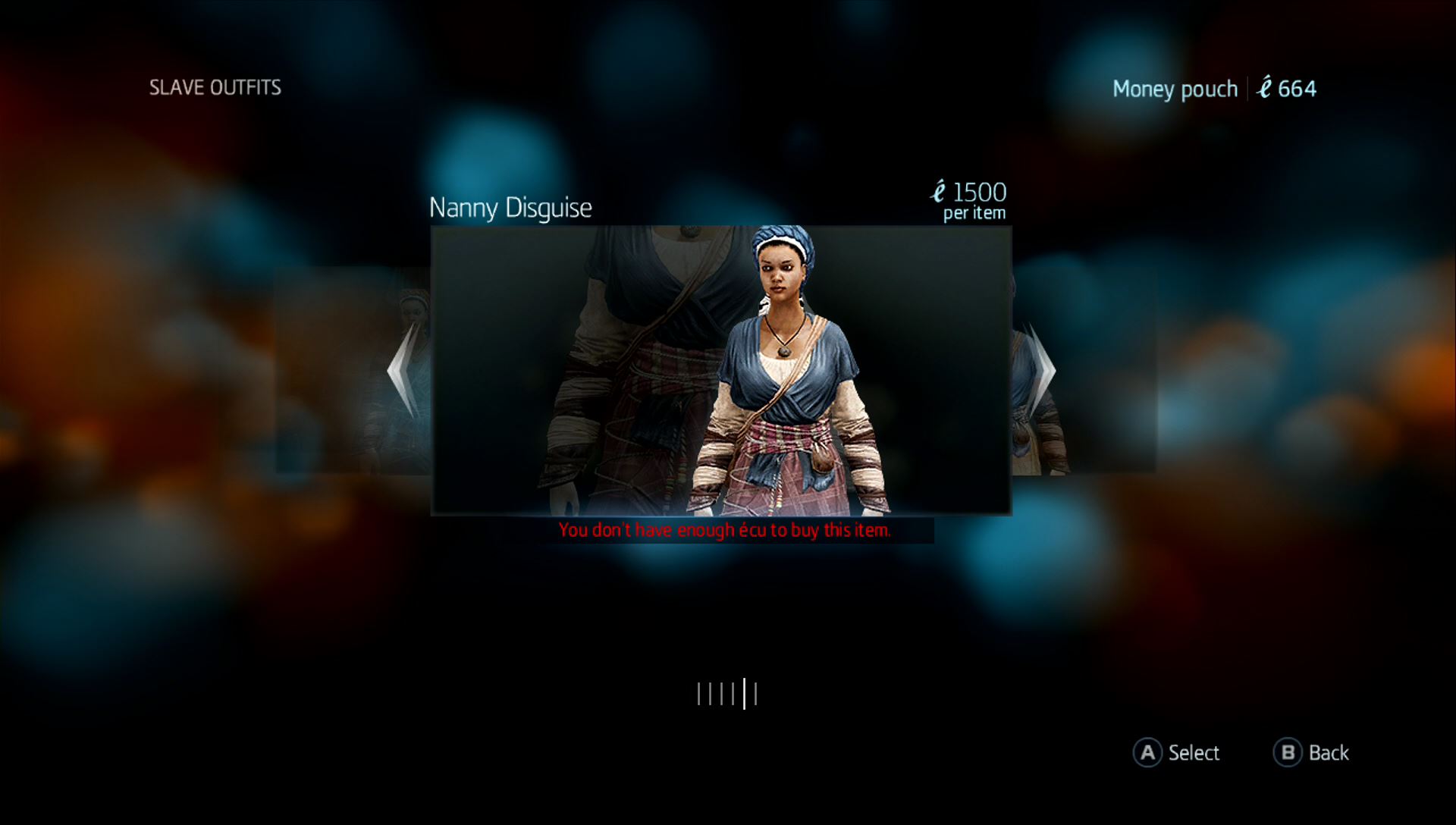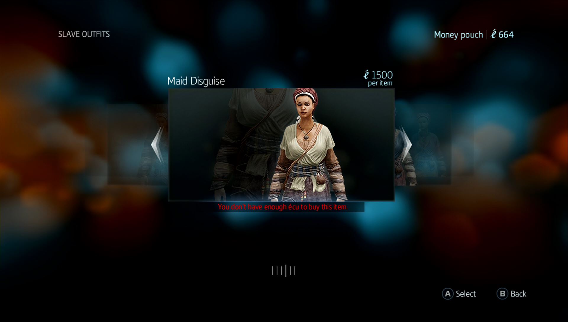Assassin's Creed Liberation HD provides a lot of customization; most of it turns out to be purely cosmetic, however there are a few functional upgrades such as a cartridge pouch upgrade early game. All items are purchased with écu.