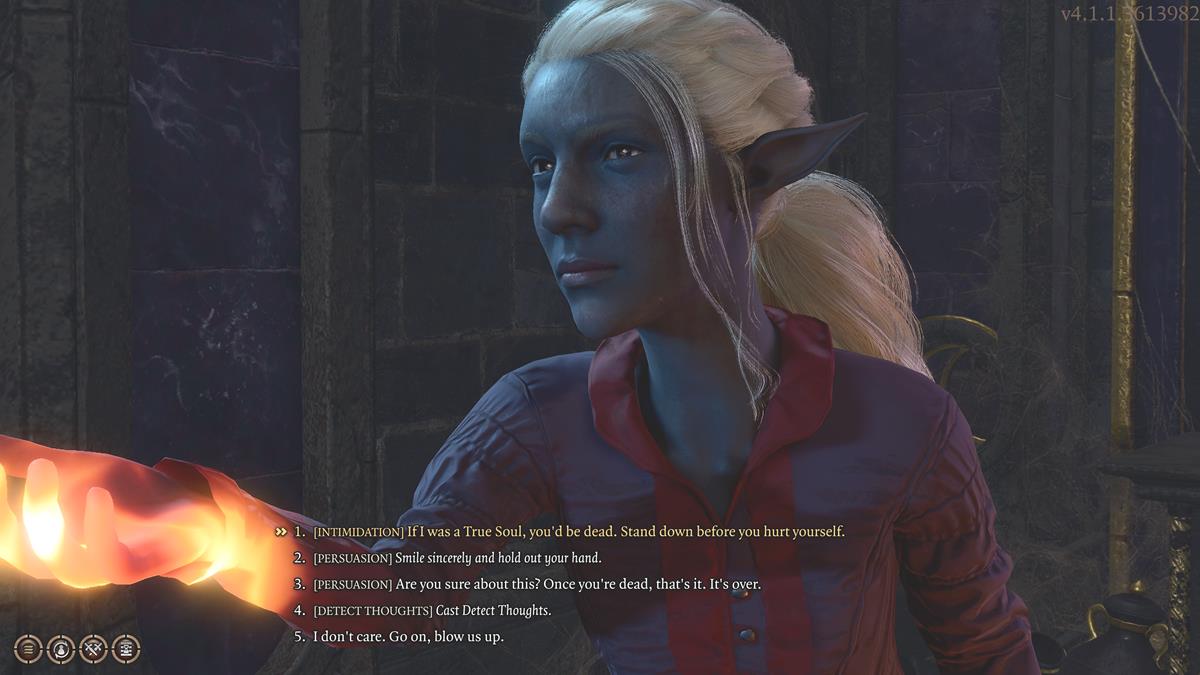 Eventually, you’ll reach a cave that’s guarded by a gnome named Philomeen. You must convince her that you don’t have bad intentions. This is done by passing the Intimidation or Persuasion checks, causing her to give you the Runepowder Vial. If you fail, Philomeen will blow herself up, as well as your entire group.
