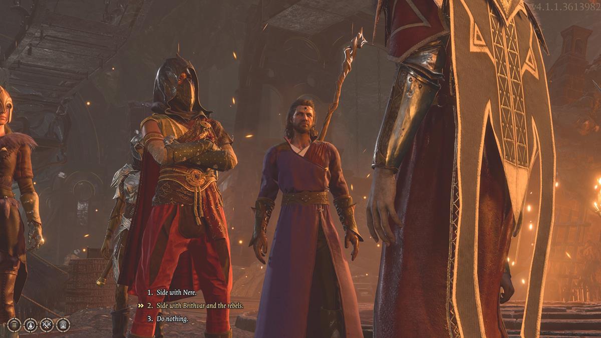 Nere isn’t too pleased, and you’re given a few dialogue choices. In the end, you have to choose whether to side with Nere’s group or Brithvar’s. Here are the key differences: