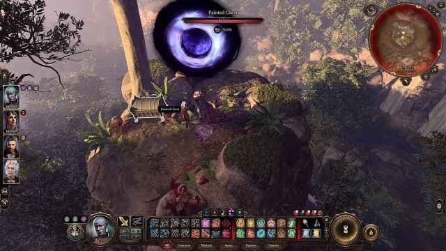 The chest next to the portal is locked. Since only one character gets sent away, use a character who’s decent with lockpicking to spin the wheel. The chest contains the legendary trident Nyrulna. It’s a good deal after spending about 1000 gold for the spin to get the Perception Check and the next spin to get the jackpot.