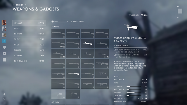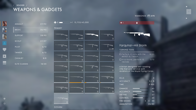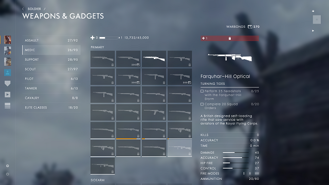 Note: Some of Battlefield 1‘s newest weapons can only be unlocked by unlocking other new weapons in the game. For example, both the Farquhar-Hill Optical and Farquhar-Hill Storm rifles are new with Turning Tides. However, the Optical variant of the Farquhar can only be unlocked by completing Weapon Assignments with the Storm.