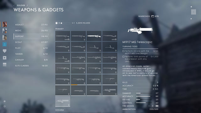 How to Unlock: Get 50 kills with the M1917 MG Low Weight and 1,500 suppression points with any LMG.