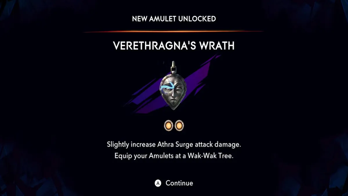 Verethragna’s Wrath provides another passive damage boost for your Athra Surges — and I use it frequently. Since you charge Athra Surges frequently in fights, you apply decent value by spamming them. Equip low-cost Athra attacks that cost one meter to get the most bang for your Verethragna’s buck.