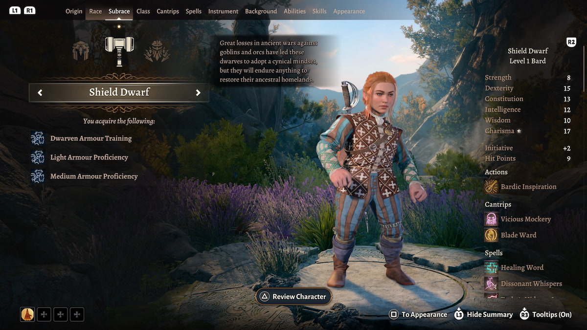 Dwarven subraces are quite versatile where I recommend you take the Shield Dwarf for Lore Bards and Duergar for Swords and Valor. This is because Shield Dwarves will get you medium armor proficiency for your caster-oriented Lore Bard. Furthermore, Duergar can get you some excellent offensive spells like Enlarge and Invisibility which work great for the melee-oriented Swords and Valor subclasses. Either way, you get Poison damage Resistance and Advantage against being Poisoned is useful throughout BG3.